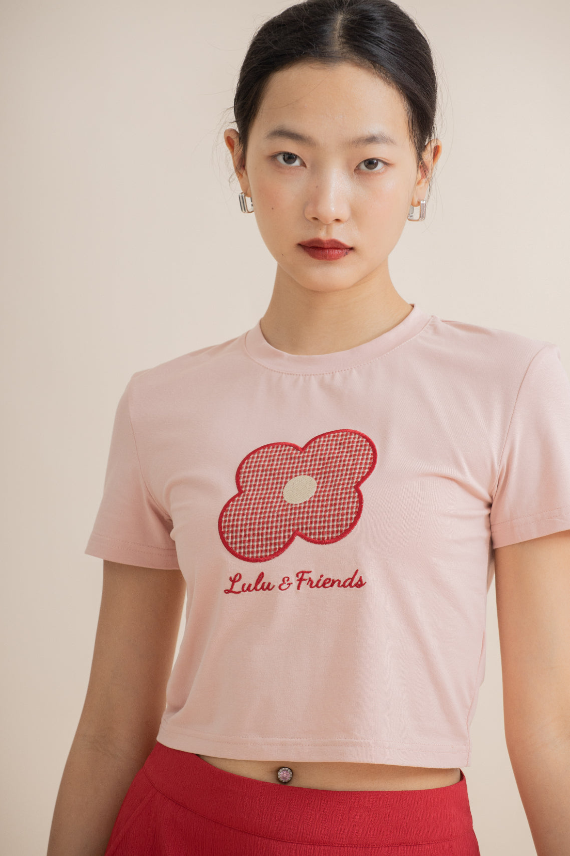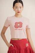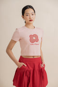 LULU Flower Embroidery Crop Tee (Pink)