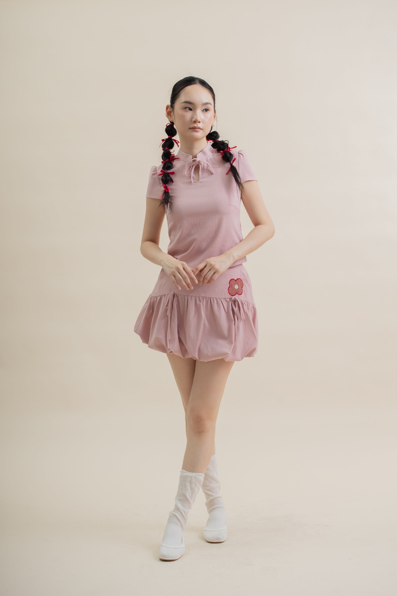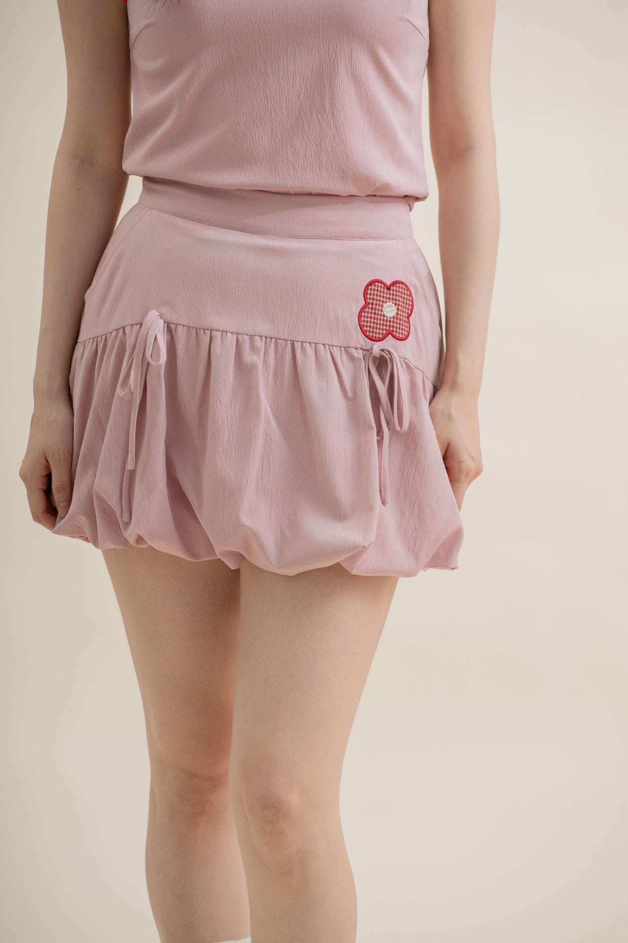 Add a touch of playful elegance with the LULU Flower Embroidery Puffy Short Skirt. Featuring a single delicate flower embroidery patch as a charming focal point, this skirt also showcases two cute ribbon details at the center for an extra whimsical touch. The puffy silhouette creates a flirty, voluminous look, perfect for pairing with fitted tops or tees. Ideal for festive occasions or adding a fun, feminine accent to your everyday style.