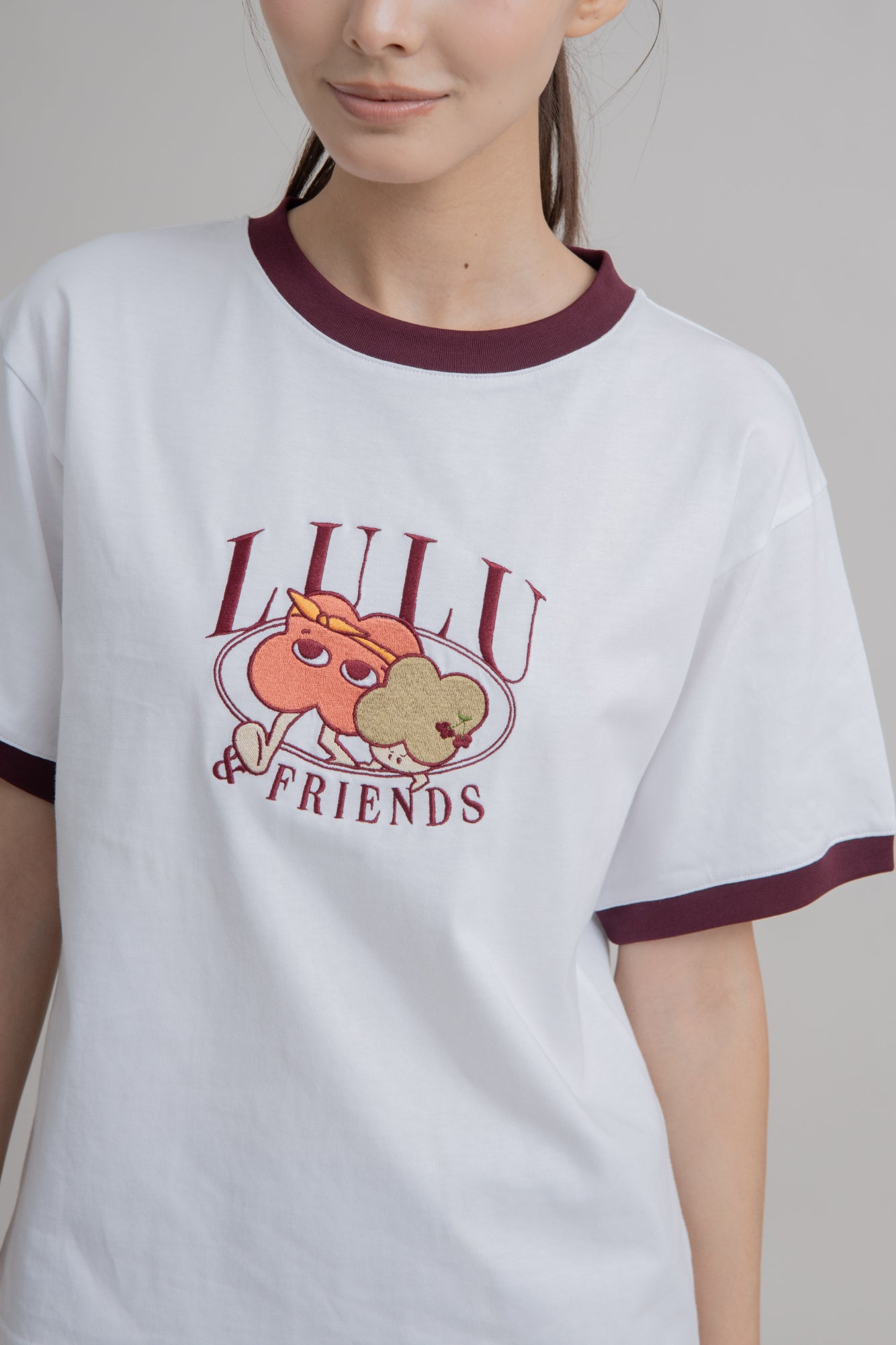LULU & FRIENDS Embroidery Contrast Tee (Ivory)