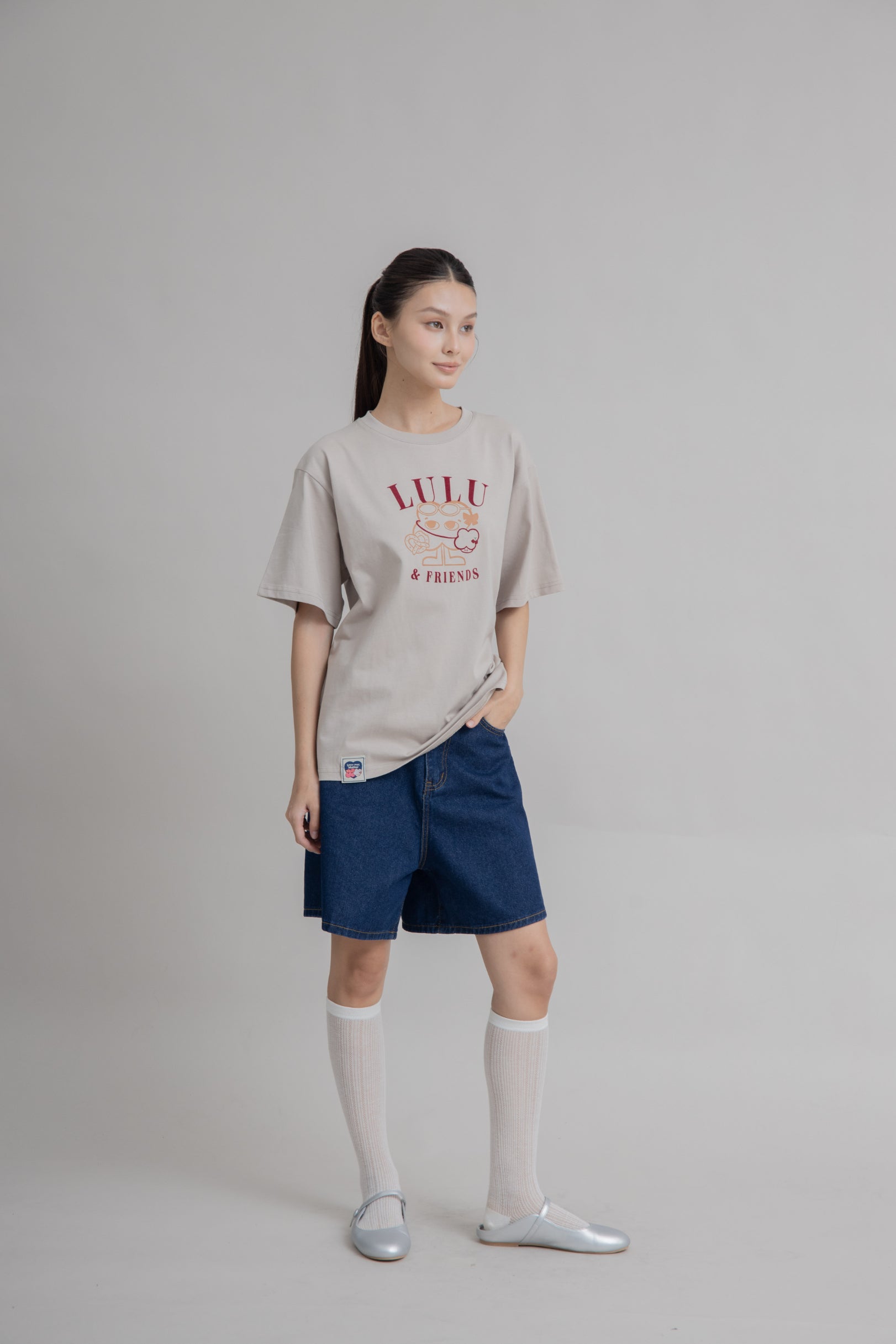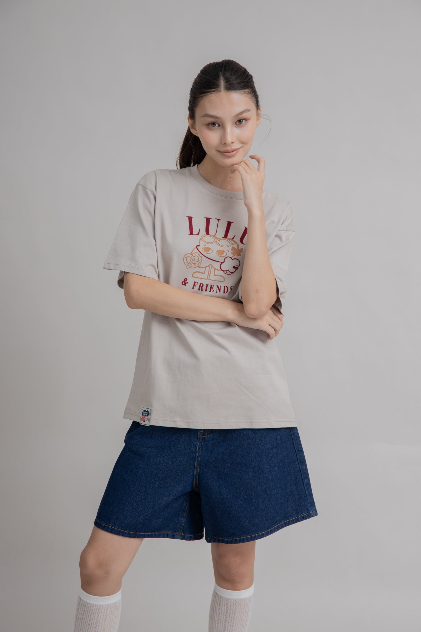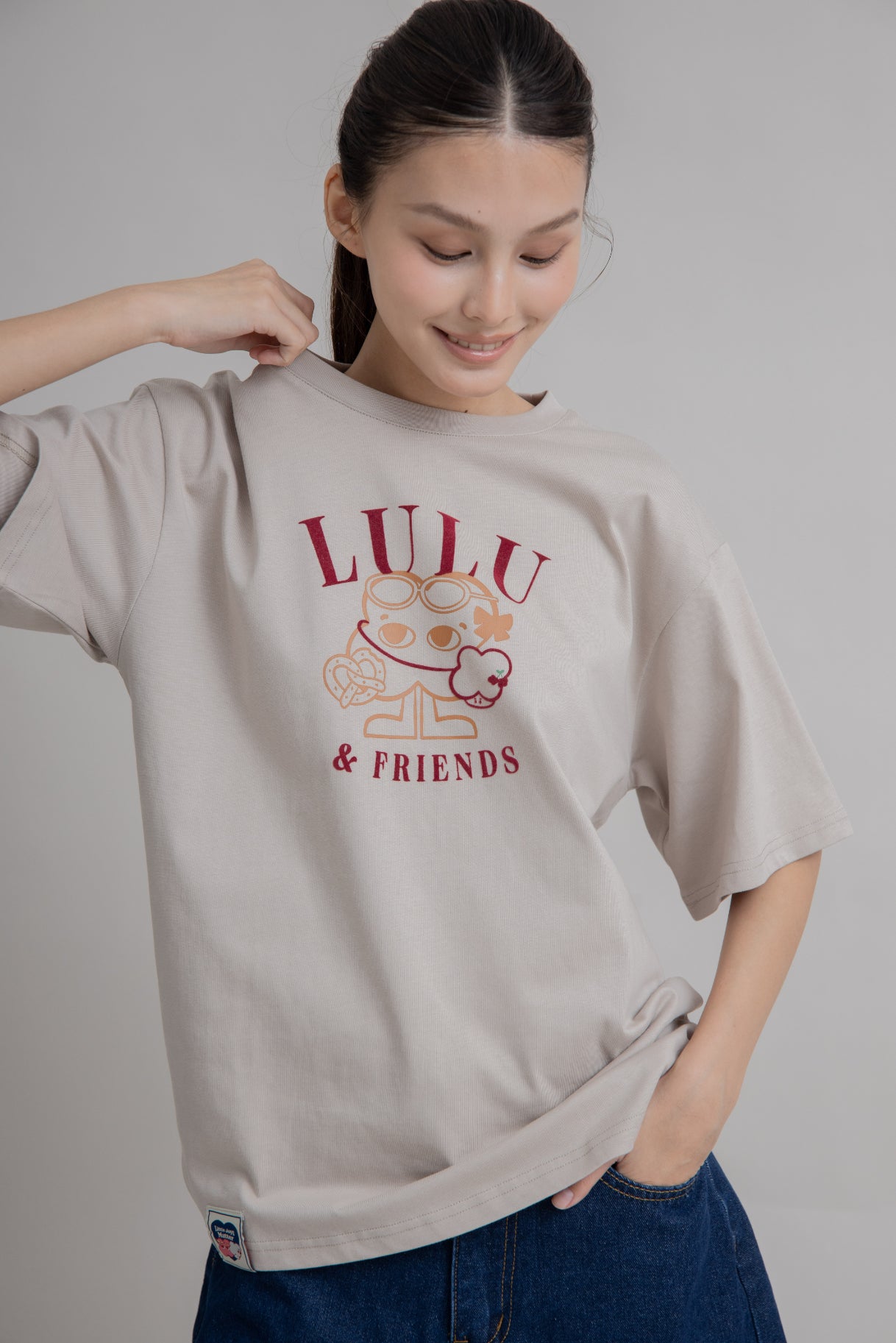 LULU & FRIENDS Flock Print Oversize Tee (Khaki Grey)