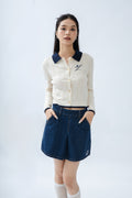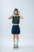 A playful twist on classic denim. This front-pleated short skirt adds a dose of charm to your everyday look with its cute, structured silhouette. The pleats bring a skirt-like bounce with a touch of vintage school-girl flair—perfect for pairing with tucked-in tees, cropped tops, or anything in between. Made from a soft yet durable blend of 73.3% cotton and polyester mix, it holds its shape while staying comfortable all day.