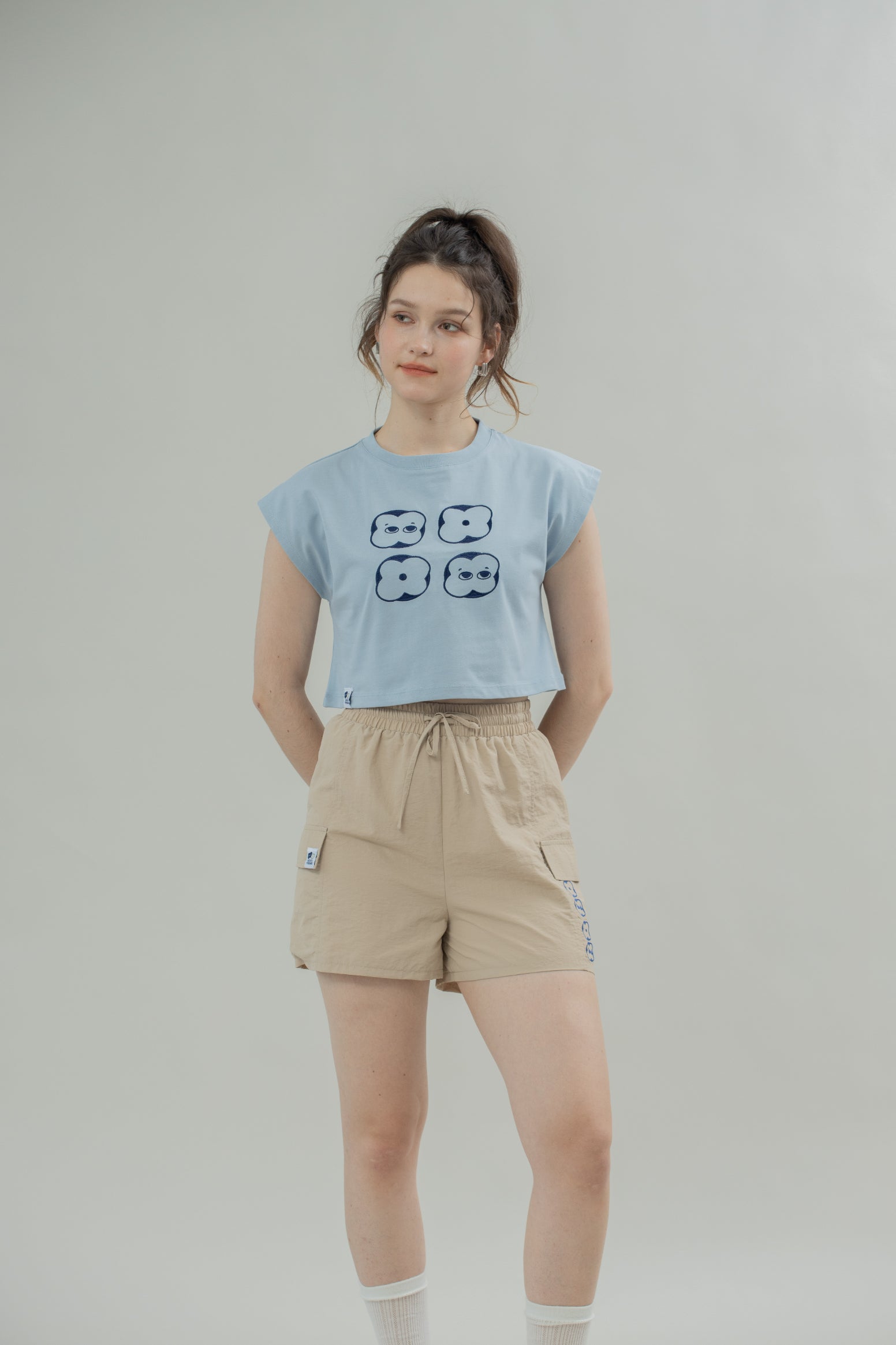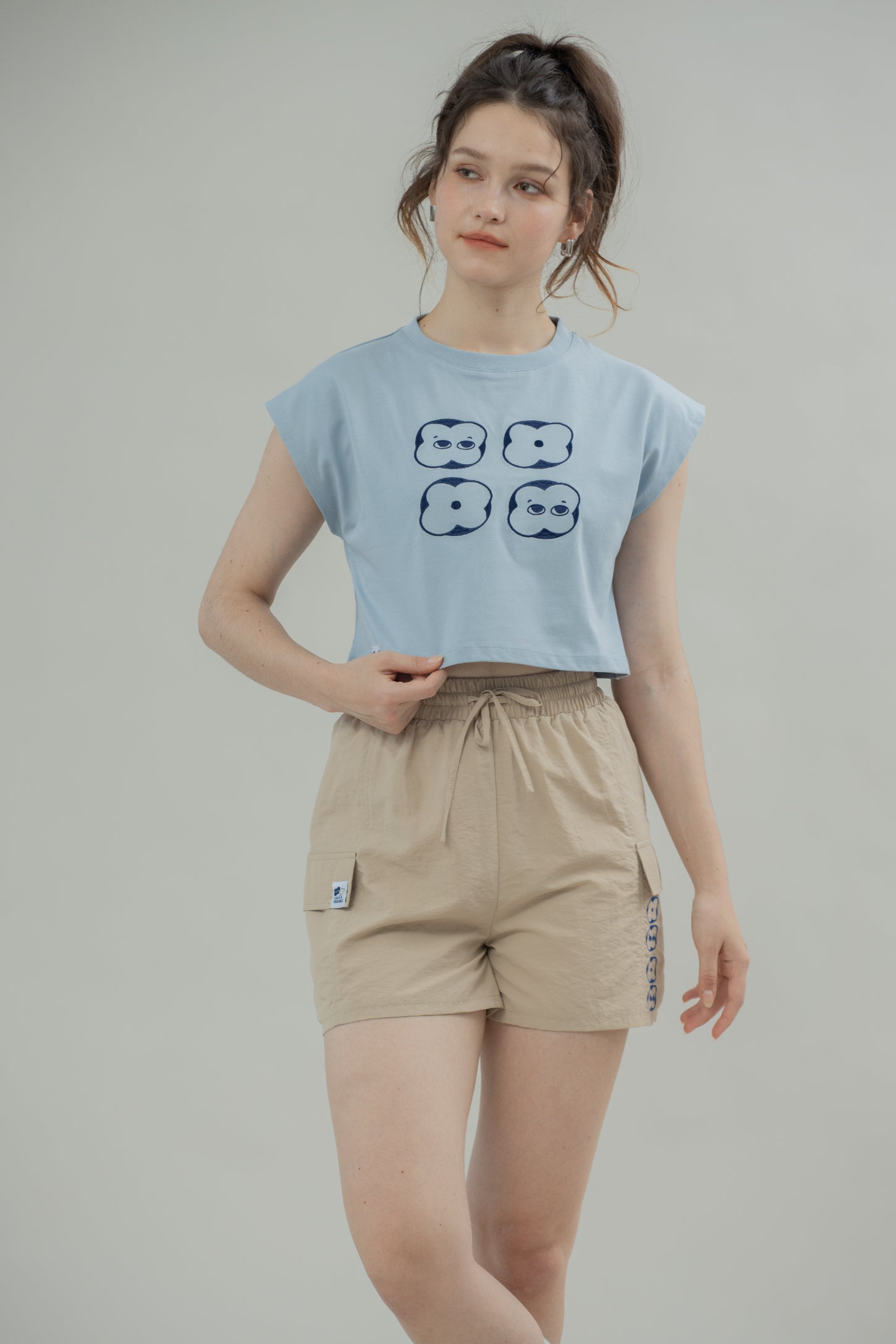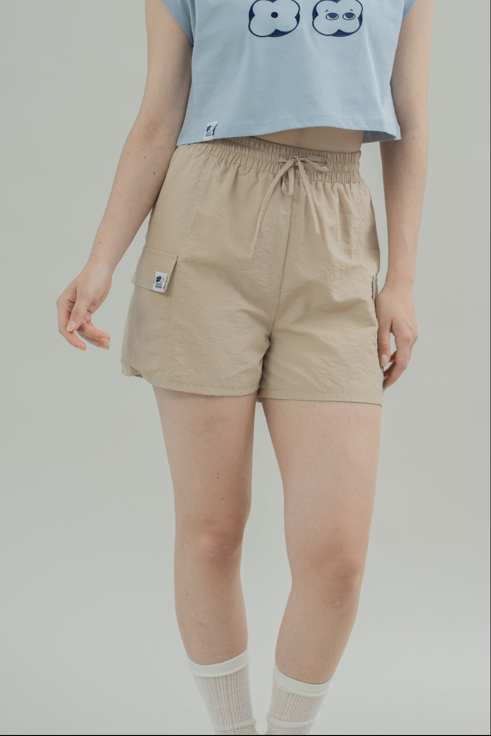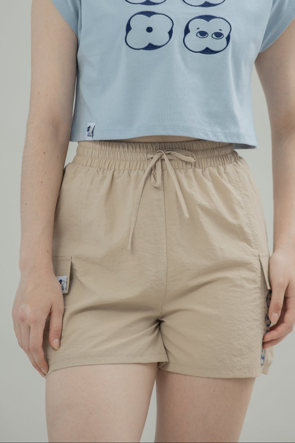 LULU Nylon Embroidery Shorts (Khaki)