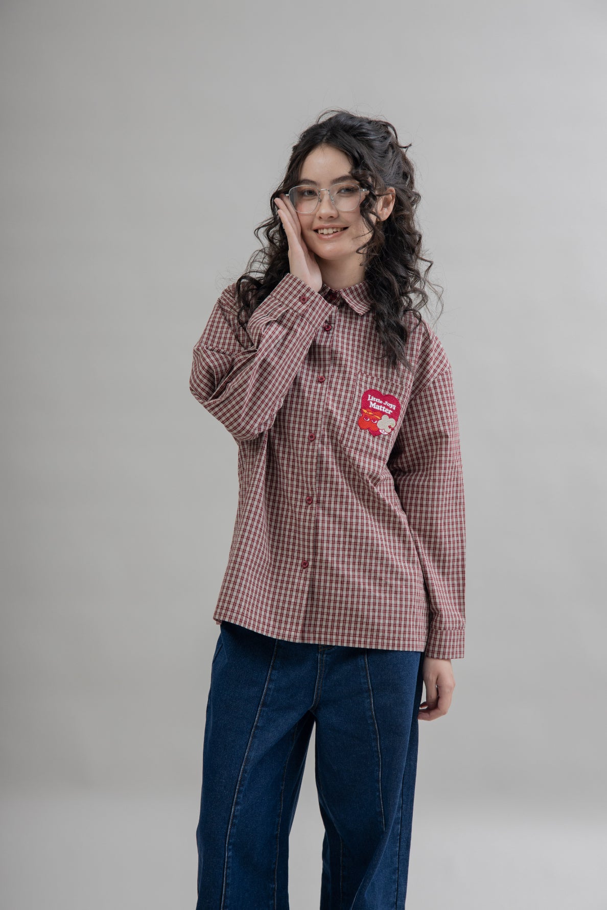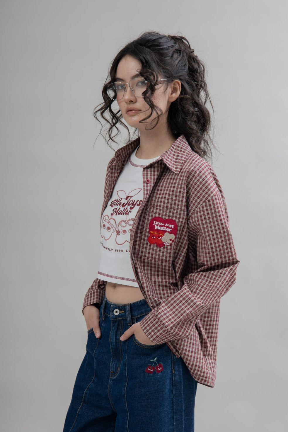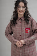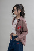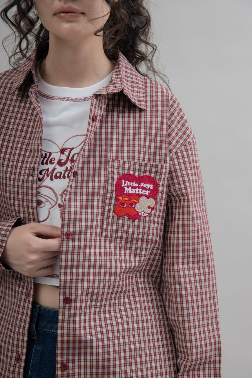 Channel vintage flair with this retro-inspired red plaid short sleeve shirt, crafted from 100% cotton for a soft, breathable feel. The timeless check pattern is elevated with a playful cherry red LULU embroidery patchwork—adding a dash of personality to this classic staple