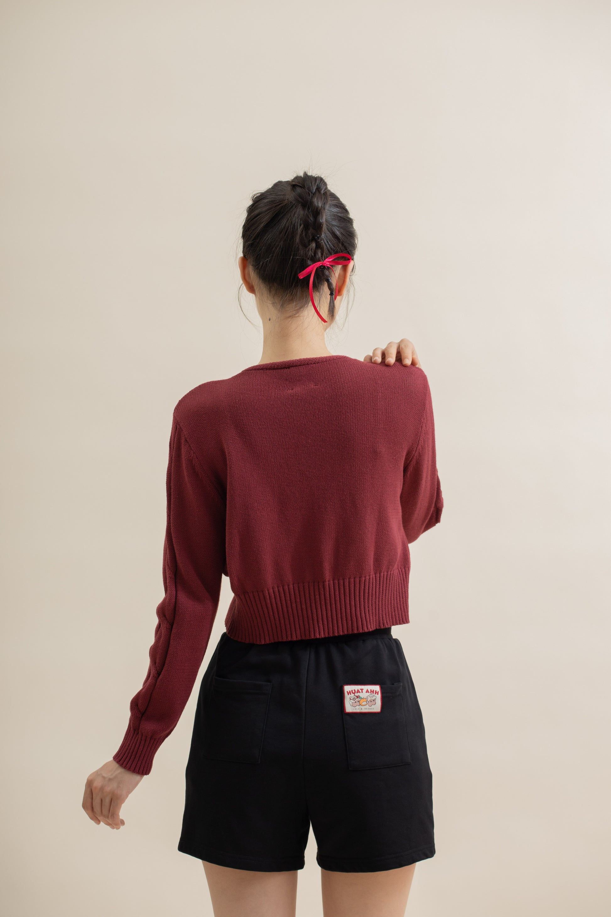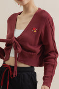 LULU Ribbon-Tie Twisted Sleeve Cardigan (Red)