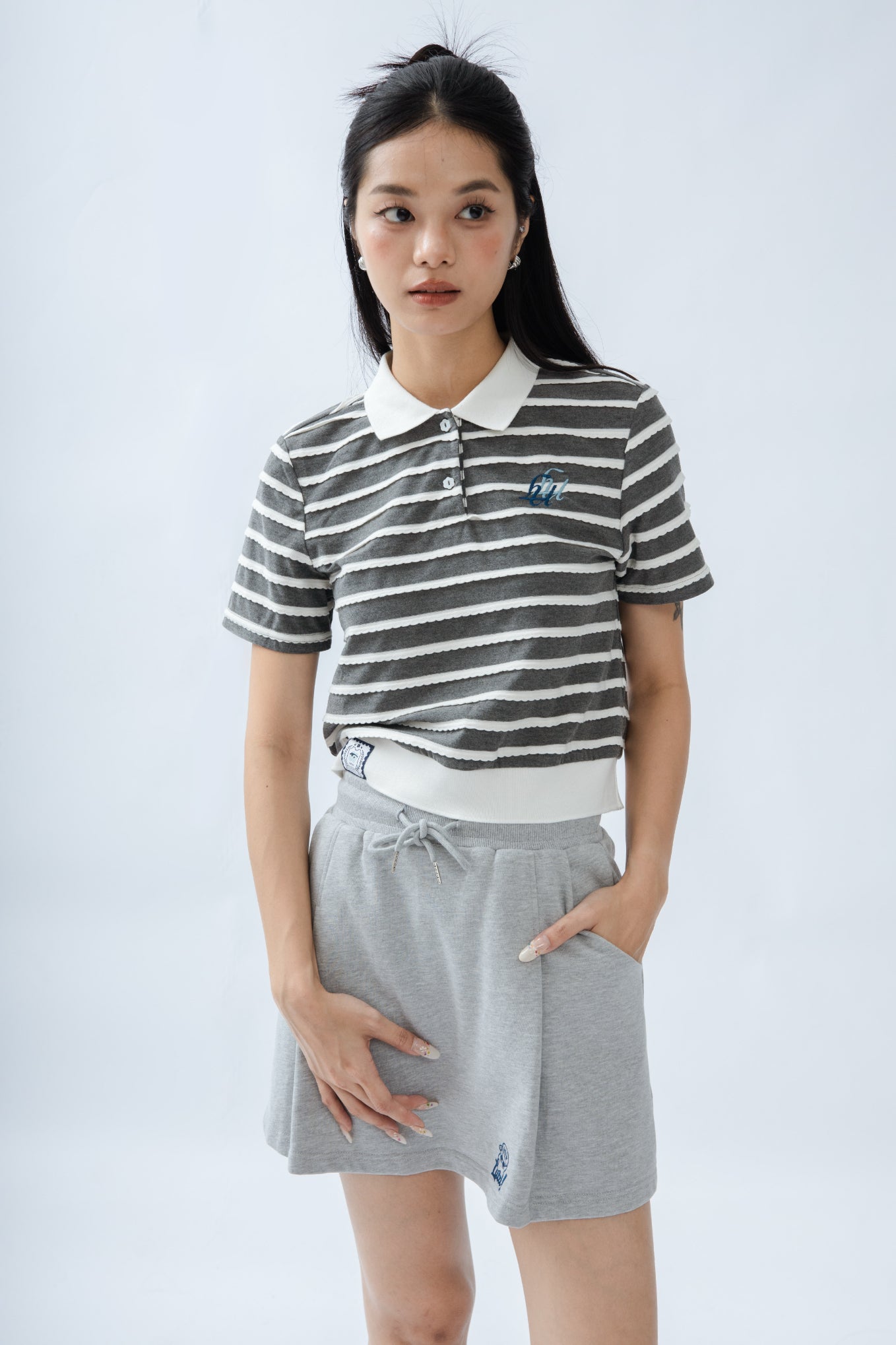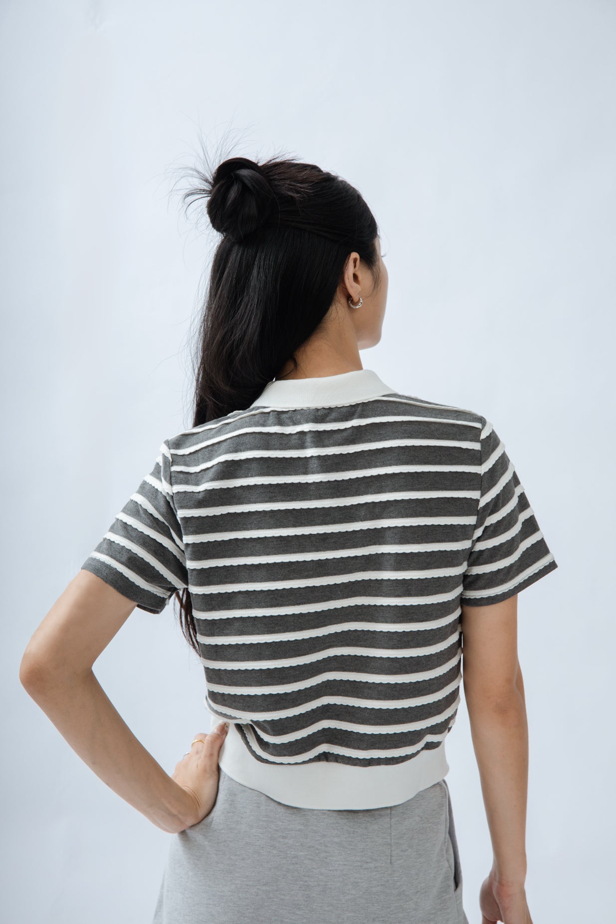 LULU Stripes Embroidery Polo (Grey Stripes)