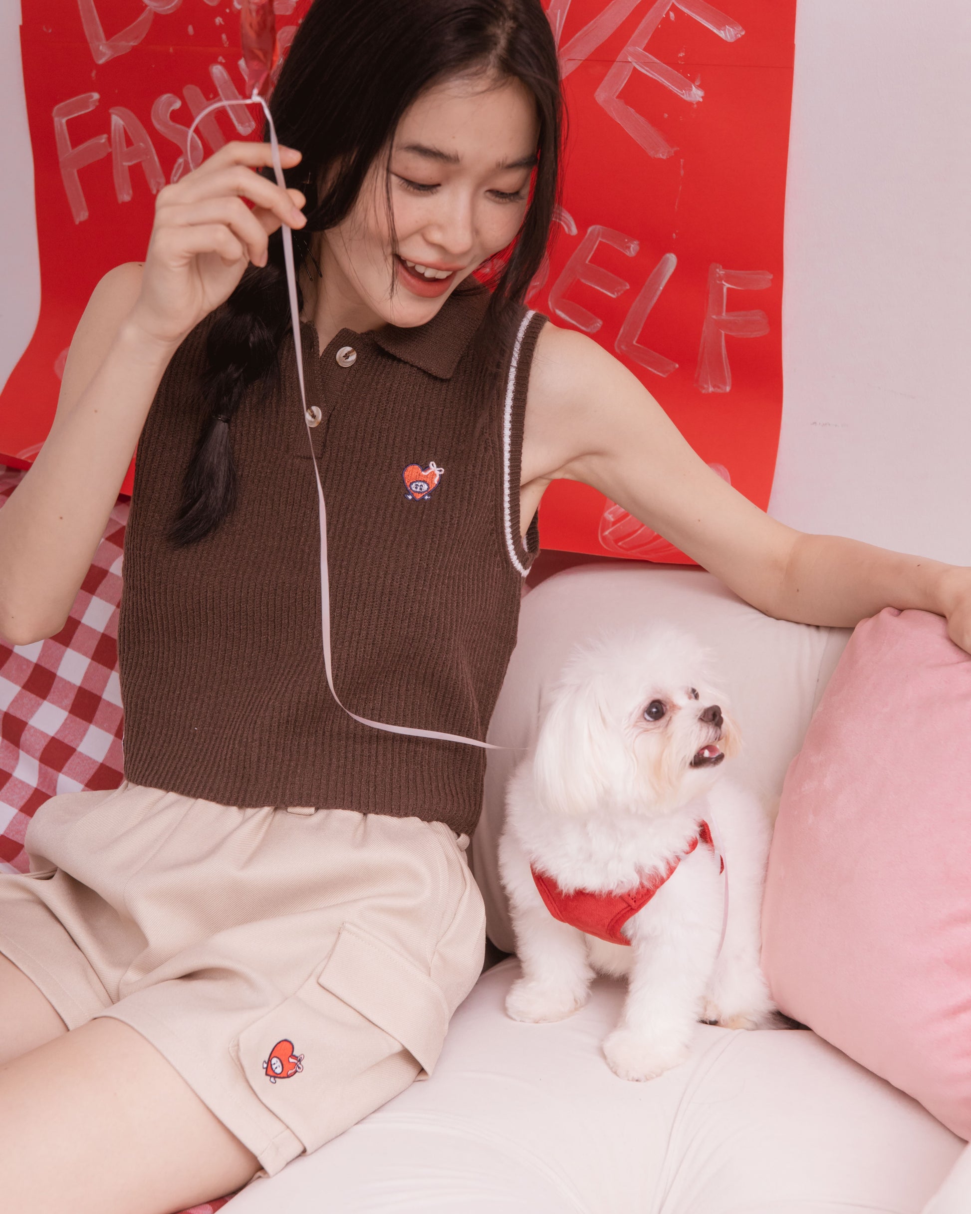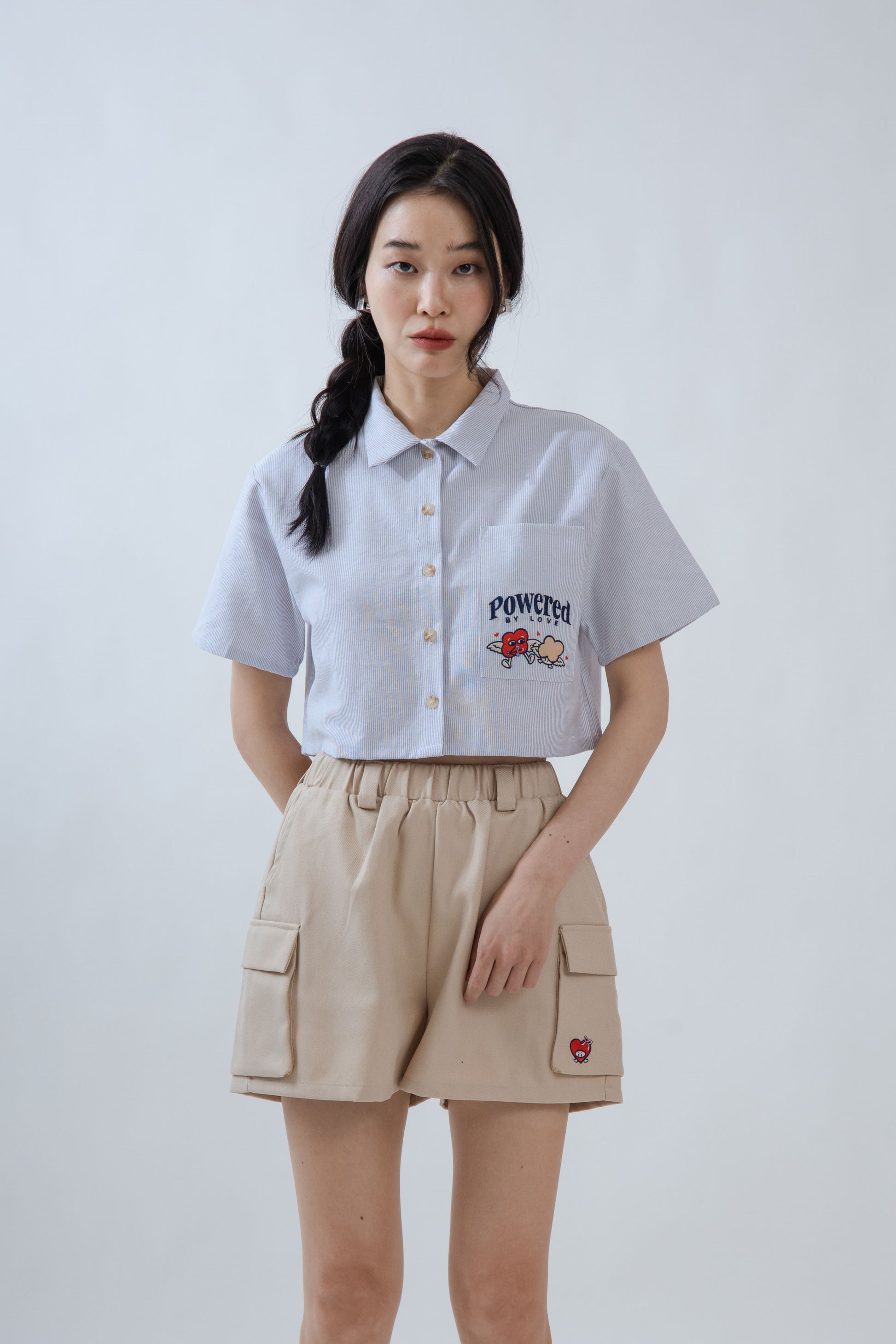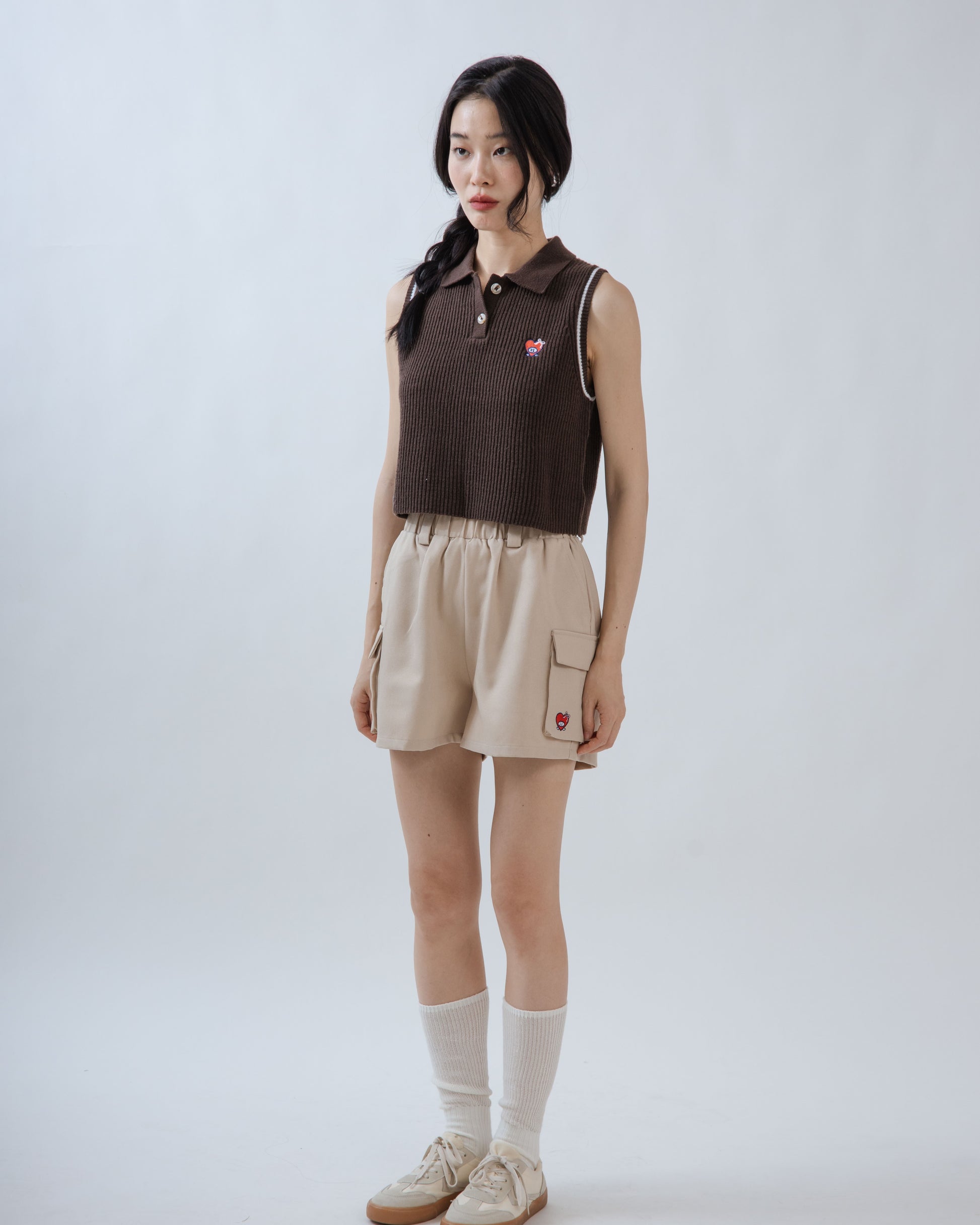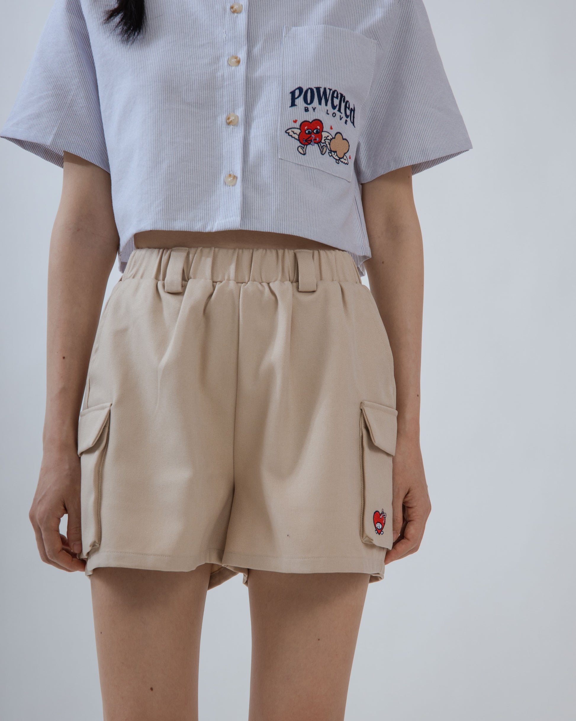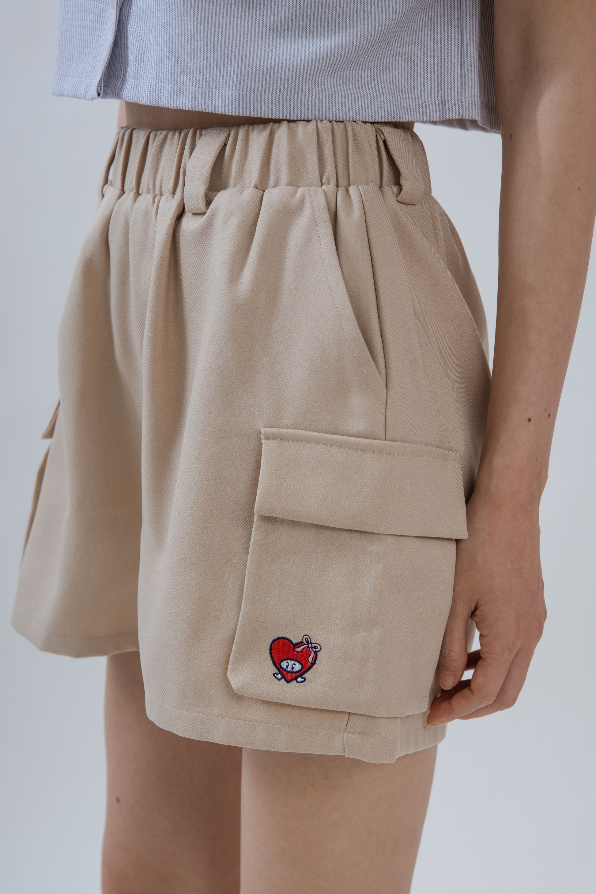 LULU You're Loved Embroidery Pocket Shorts (Beige)