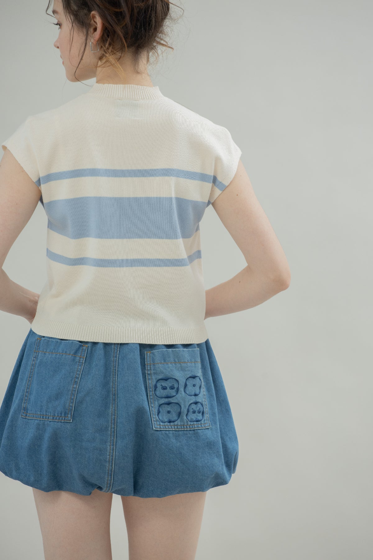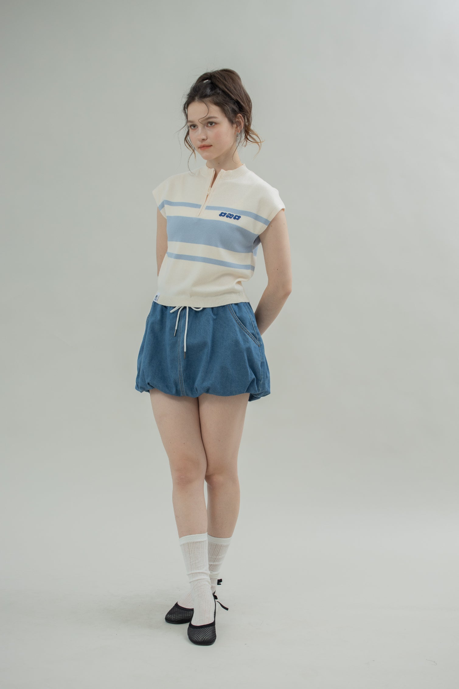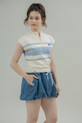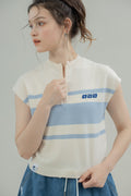 LULU Zipper Stripes Knit Top (Blue Stripes)