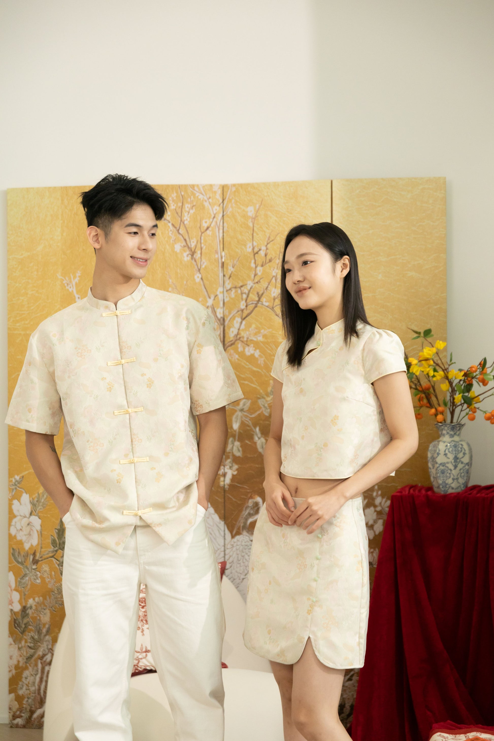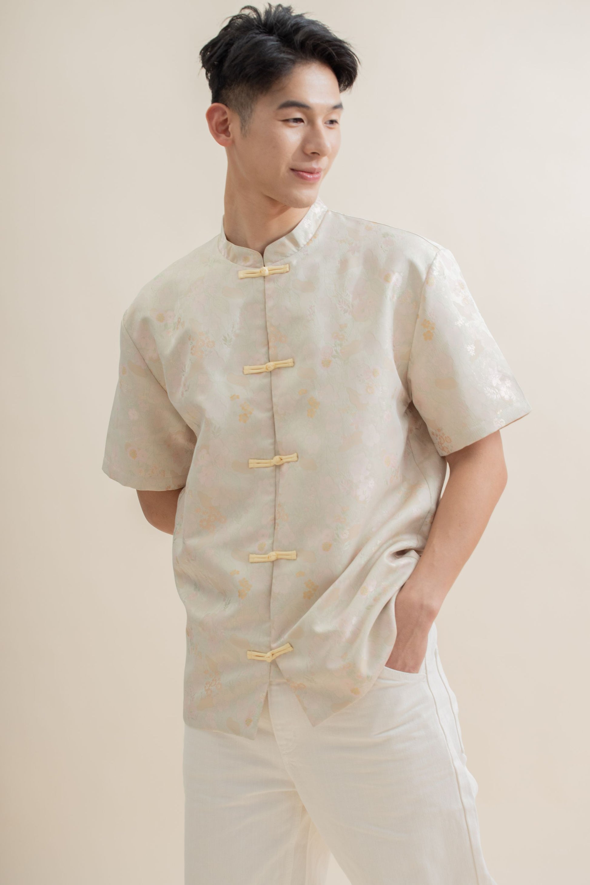 A modern tribute to classic heritage — this short sleeve Tang suit top features a refined floral jacquard pattern that adds depth and texture to its timeless silhouette. Crafted from smooth 100% polyester, it offers a structured yet lightweight feel that’s comfortable for festive or formal occasions.