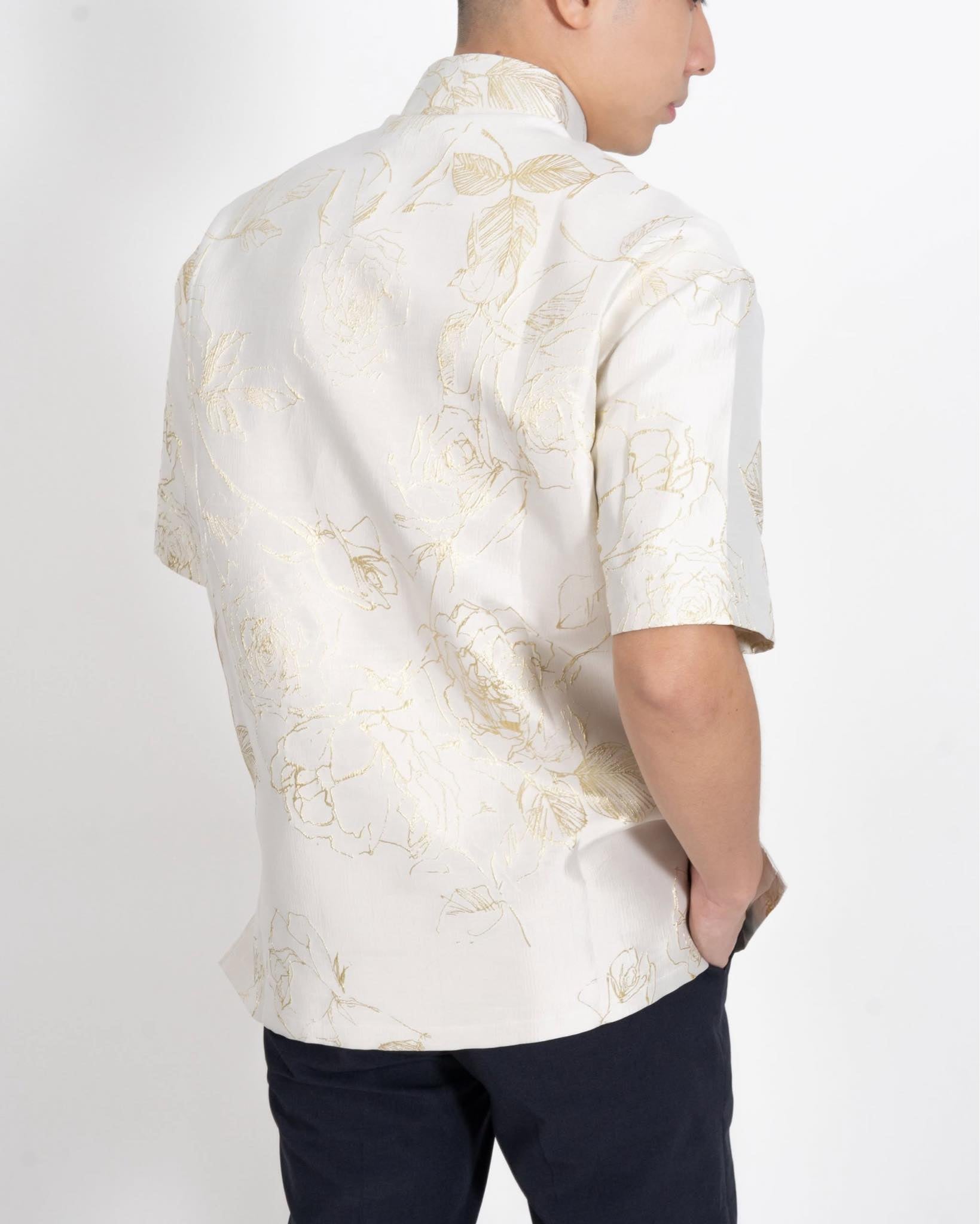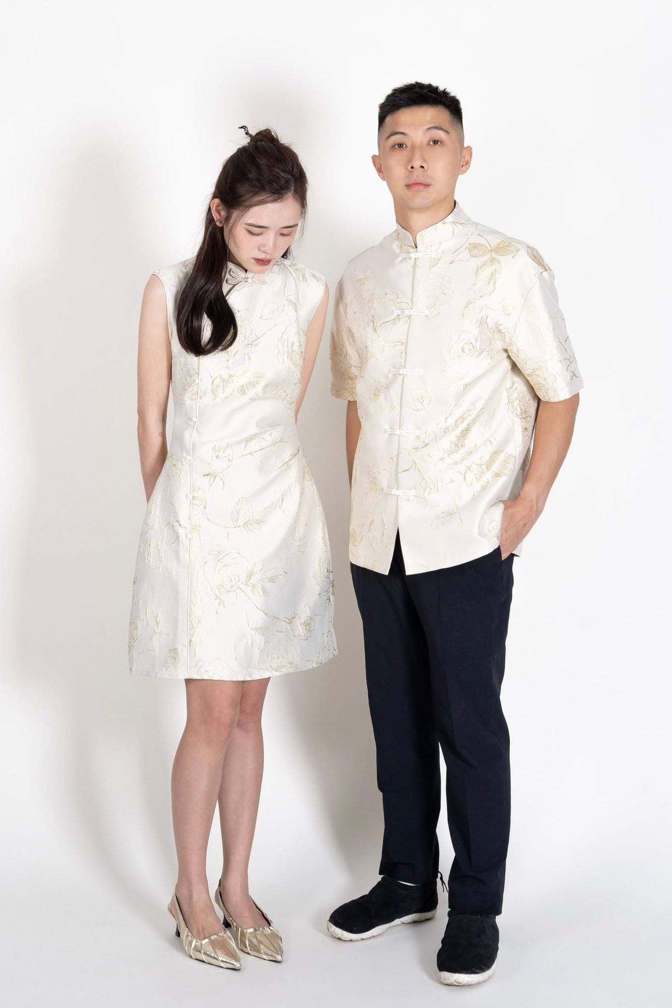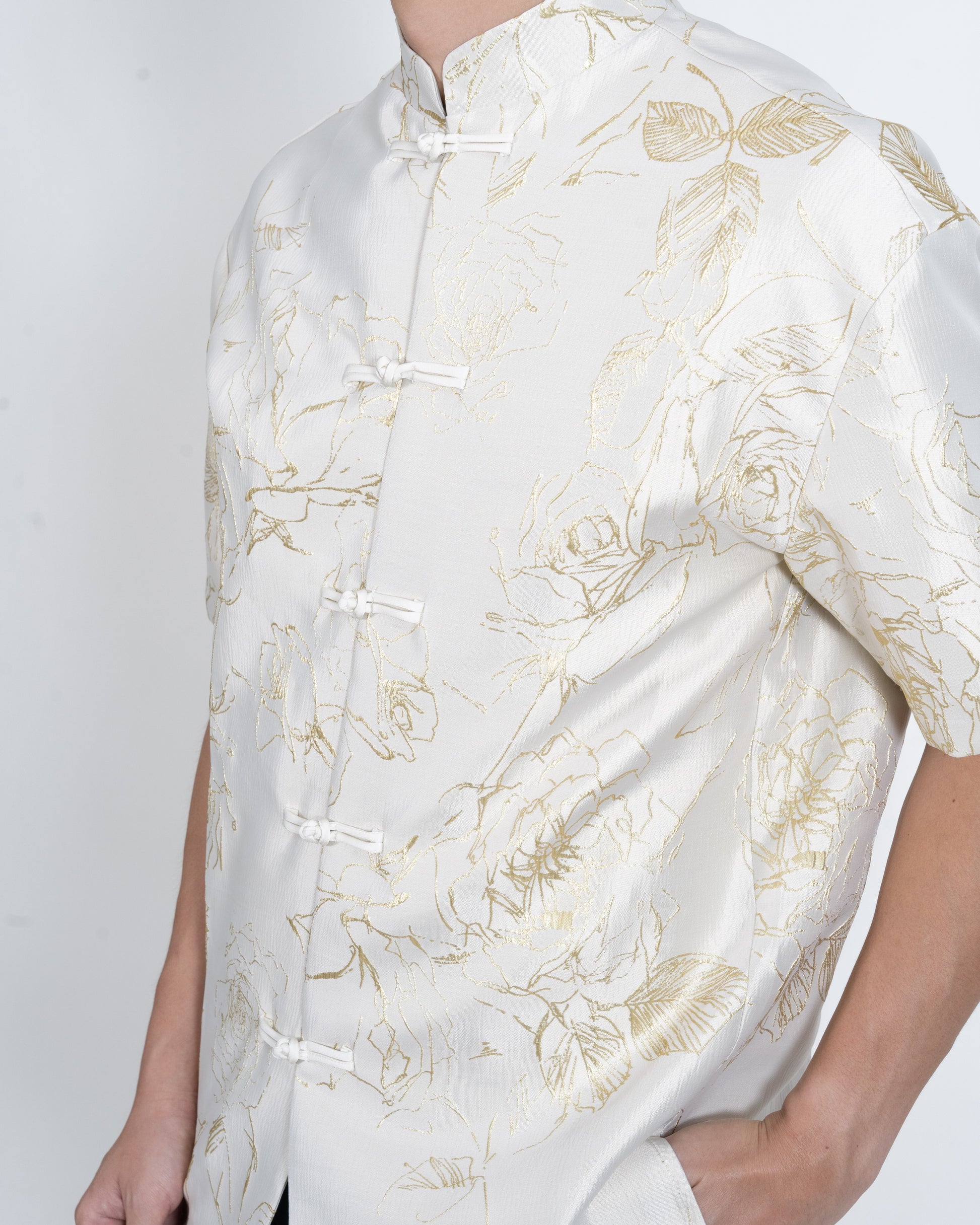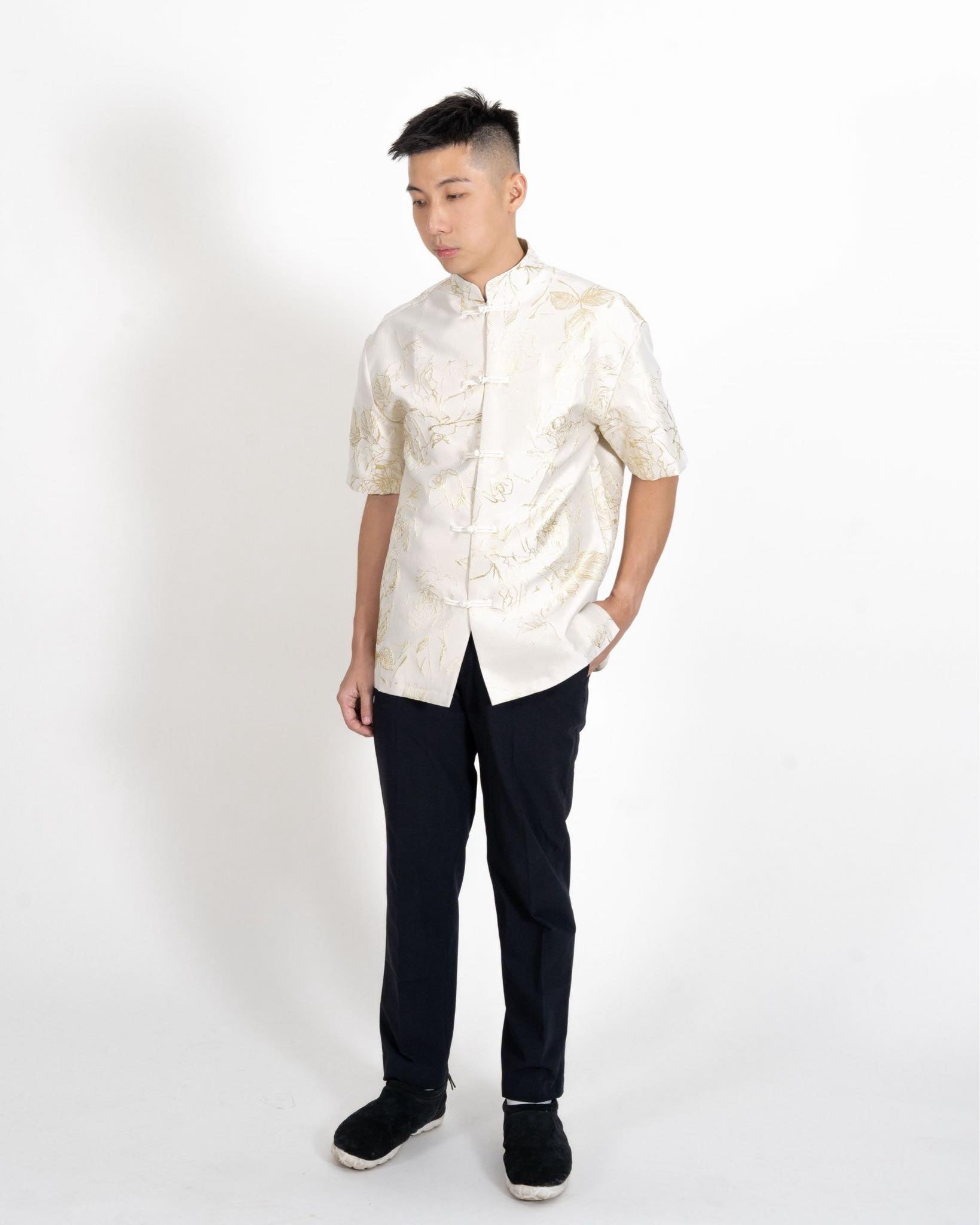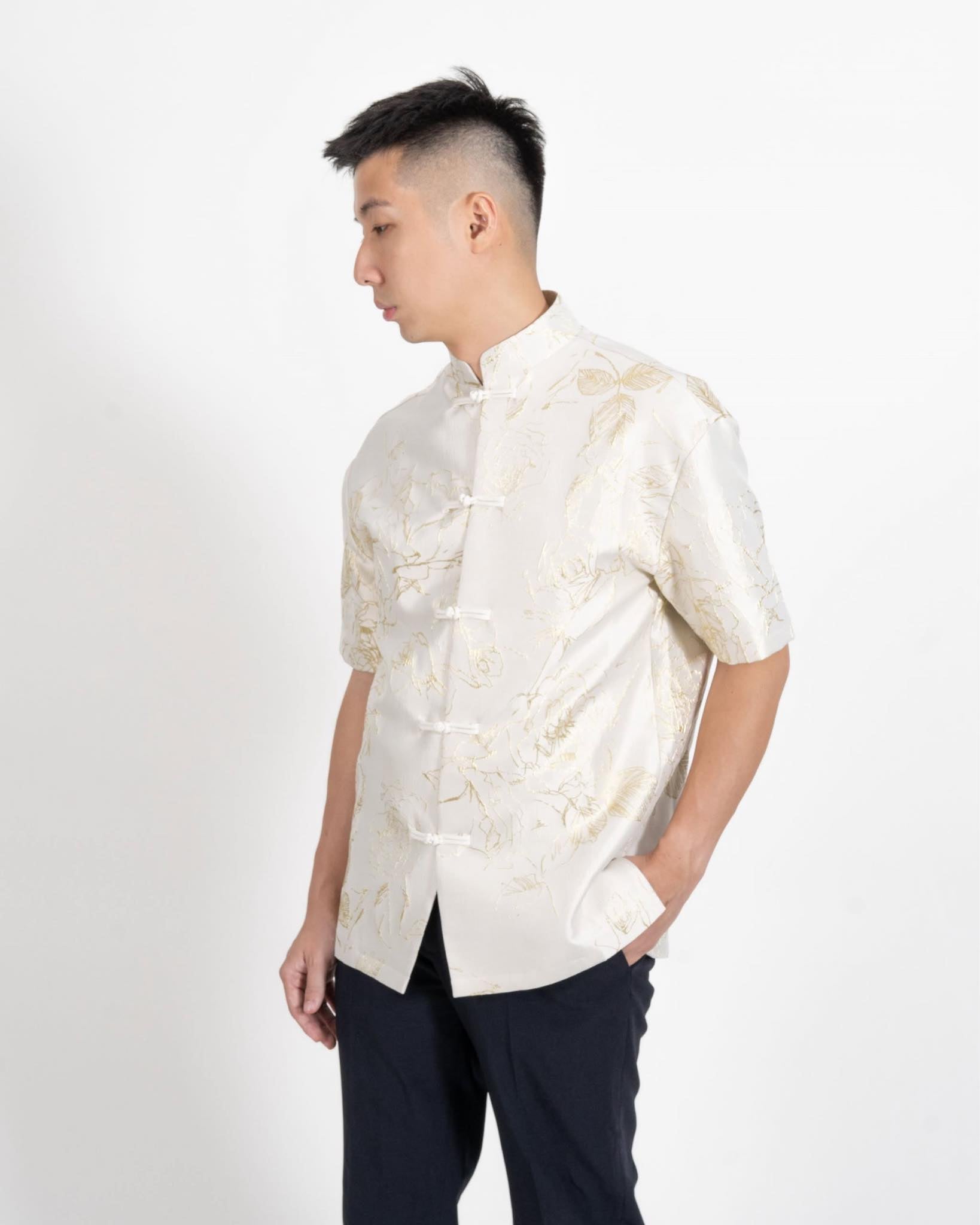Menswear Floral Gold Embroidery Tang Suit (Beige)