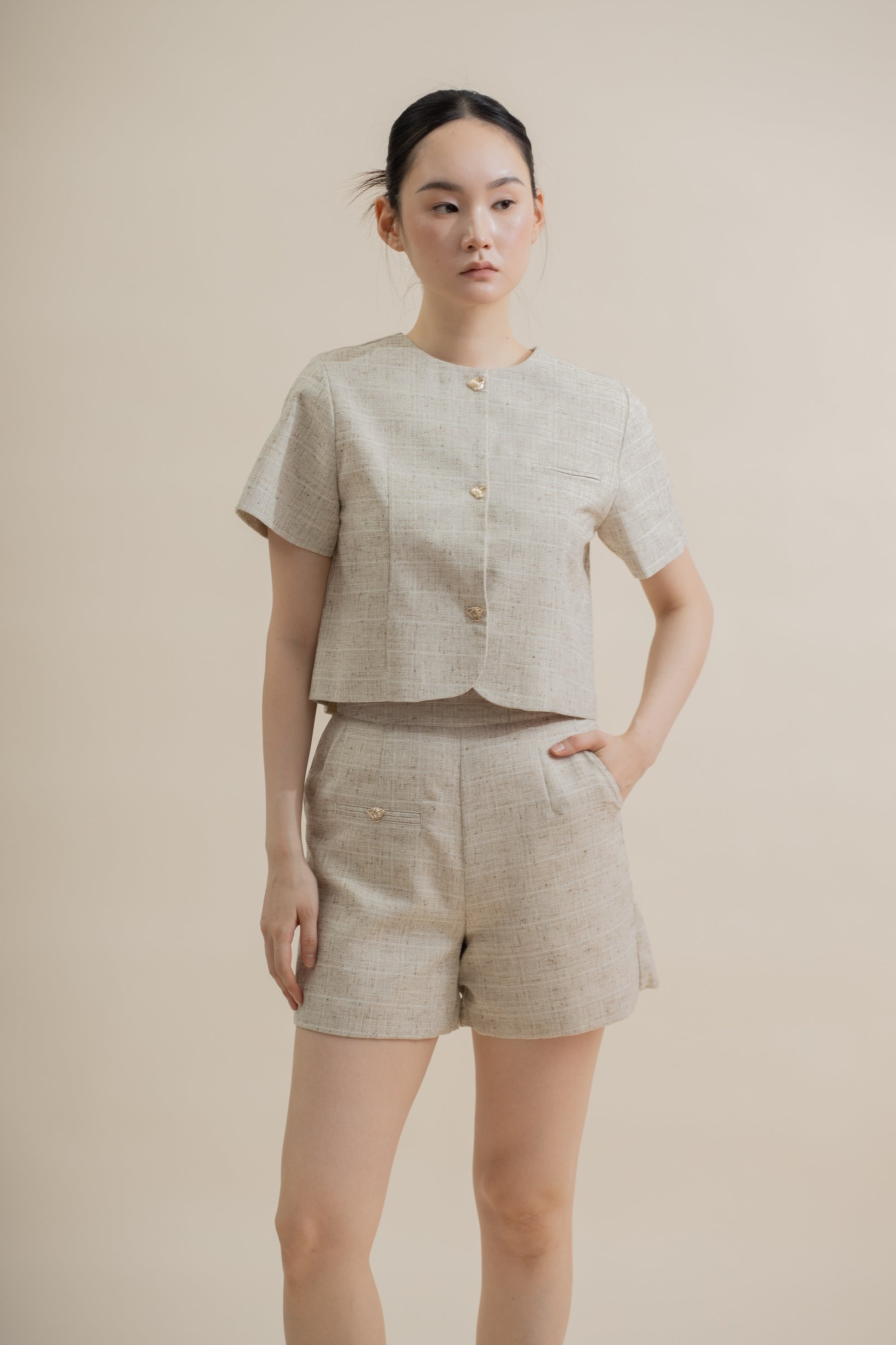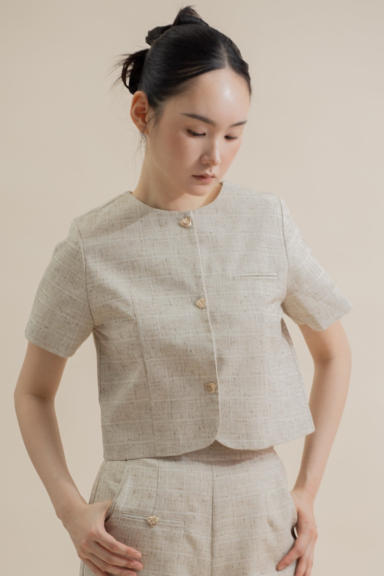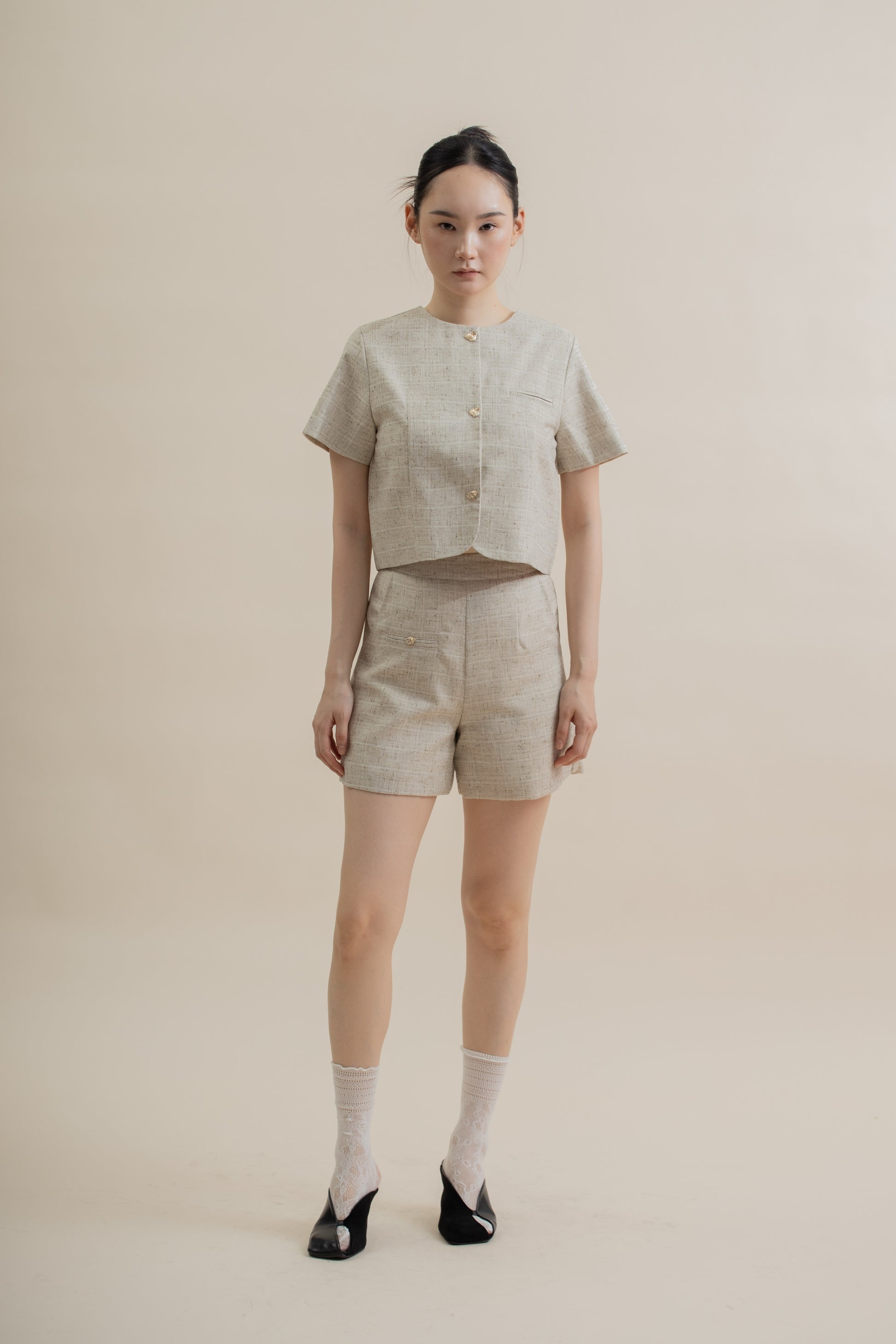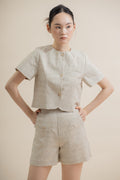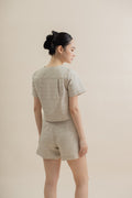 Mirelle Button Short Sleeve Top (Khaki Grey Mix)