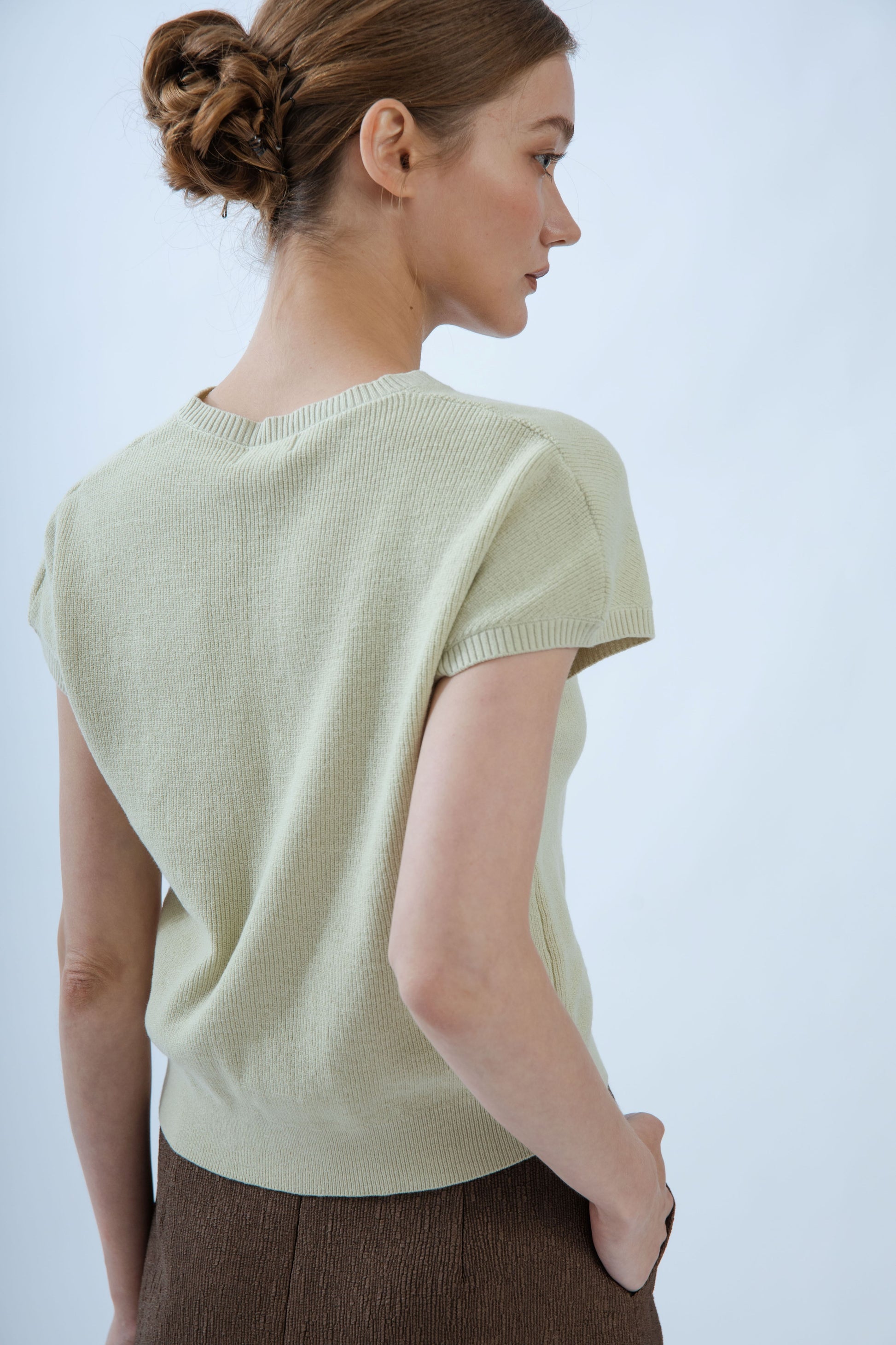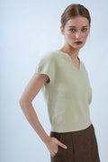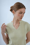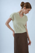 Open V Neck Knit Top (Sage)