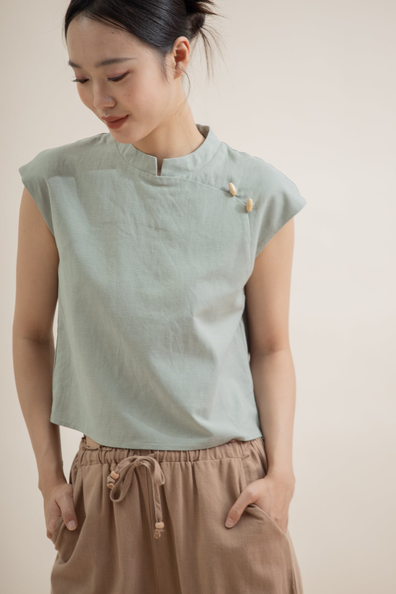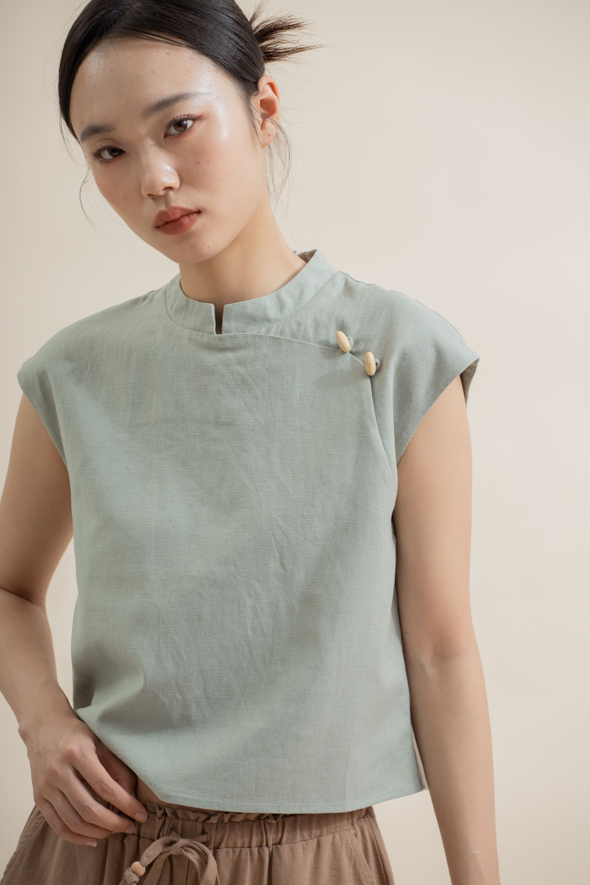 Channel timeless elegance with our oriental inspired top, designed with a refined silhouette and traditional detailing. Featuring a structured high collar and delicate asymmetrical closure accents, this piece nods to classic East Asian style while embracing a clean, modern edge. Crafted from a breathable and textured blend of 50% Viscose, 30% Linen, 20% Cotton, it offers both softness and structure, making it perfect for warm days or smart layering.