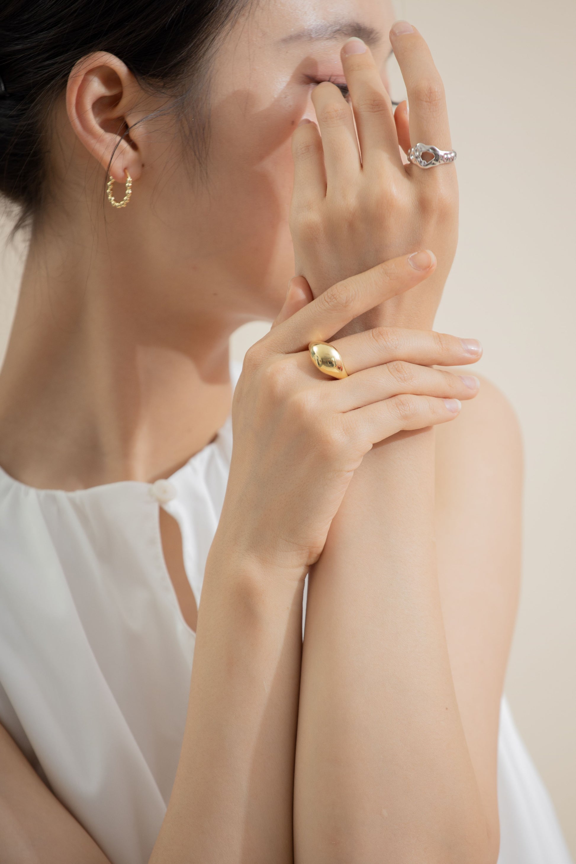 Elegant and refined — this Teardrop Ring features a smooth, fluid shape that captures light beautifully from every angle. Available in silver and gold, its minimalist design adds a touch of soft sophistication to any look. Perfect for everyday wear or as a delicate accent to your evening style.
