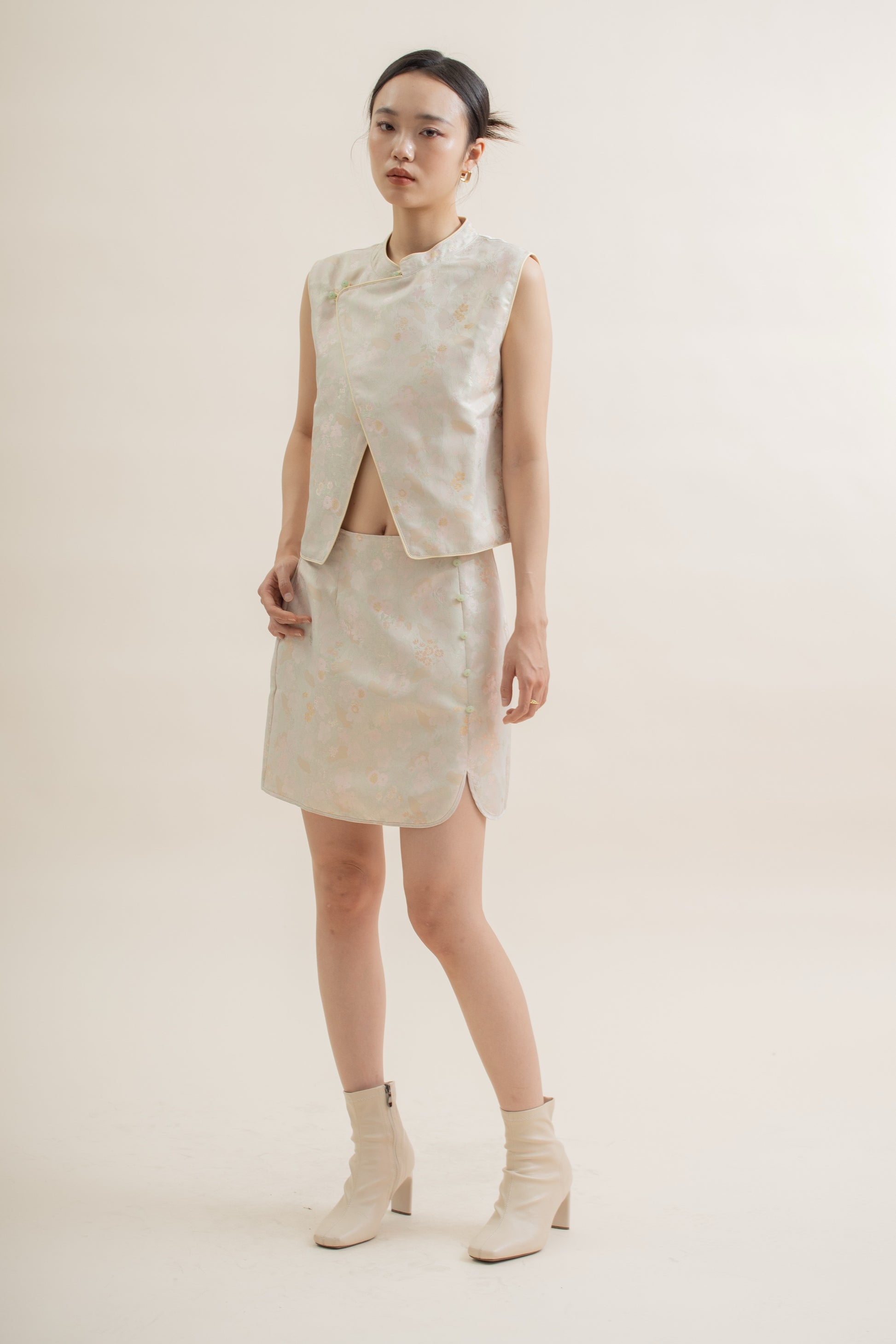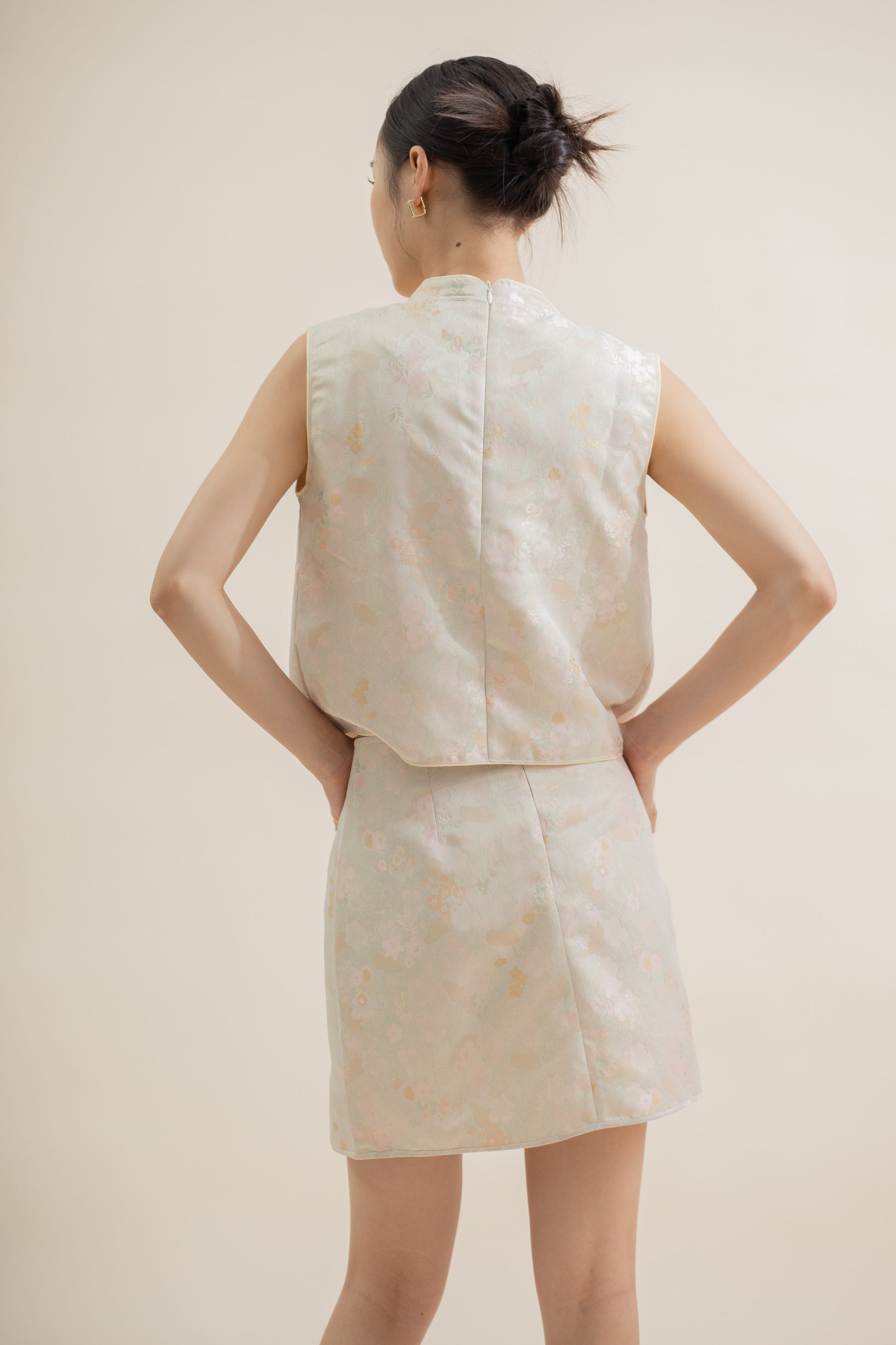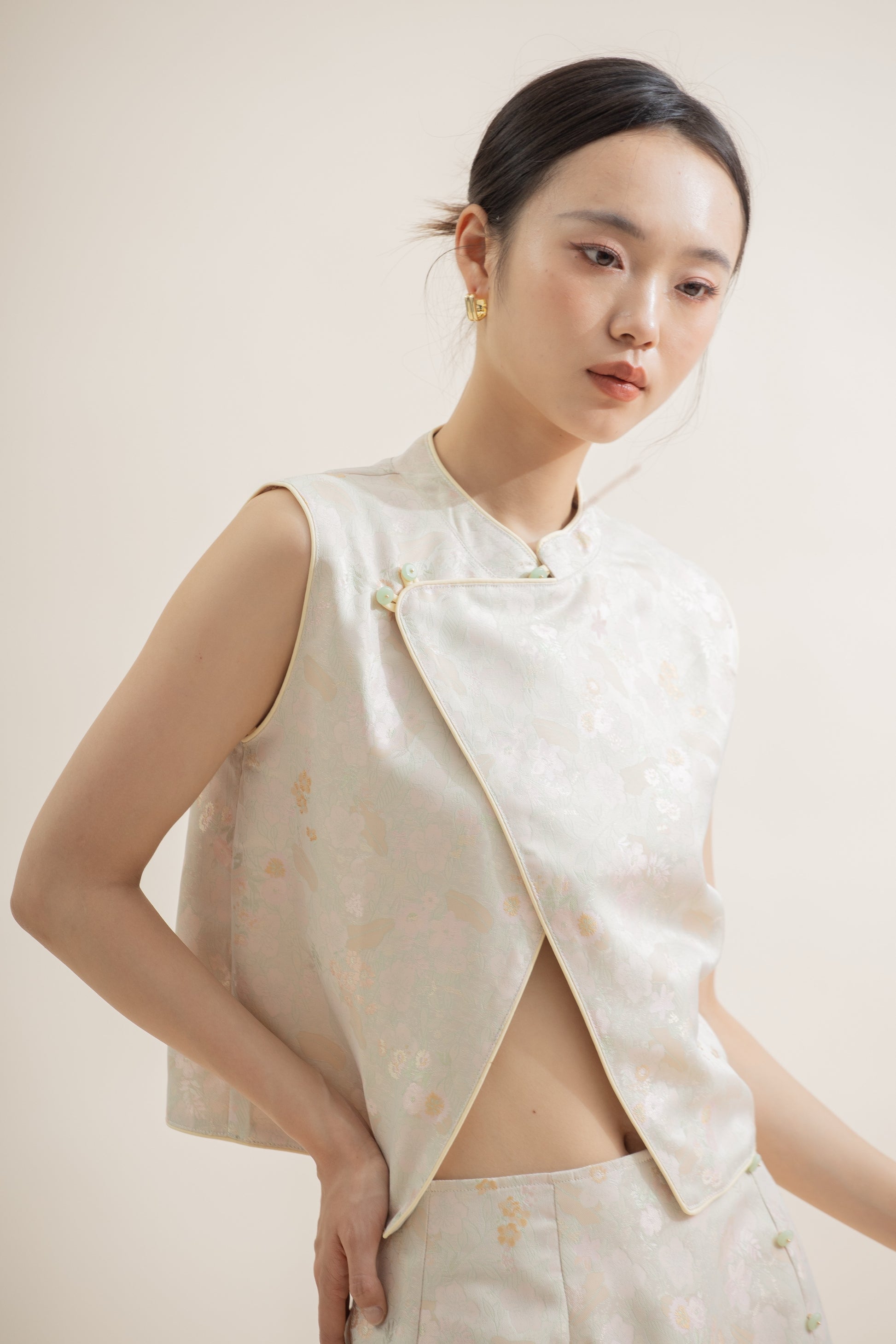 Pastel Gleam Floral Overlap Cheongsam Top (Beige Yellow)