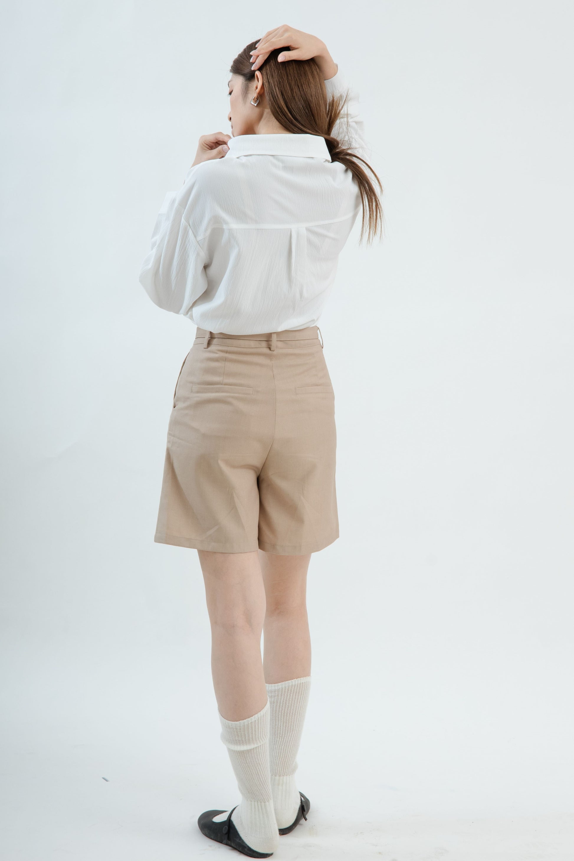 Polished yet easygoing, these high-waisted shorts feature a flattering tailored cut and a self-tie belt for a customizable fit. Made from a smooth and breathable blend of 80% polyester and 20% viscose, they offer both structure and softness for all-day comfort.
