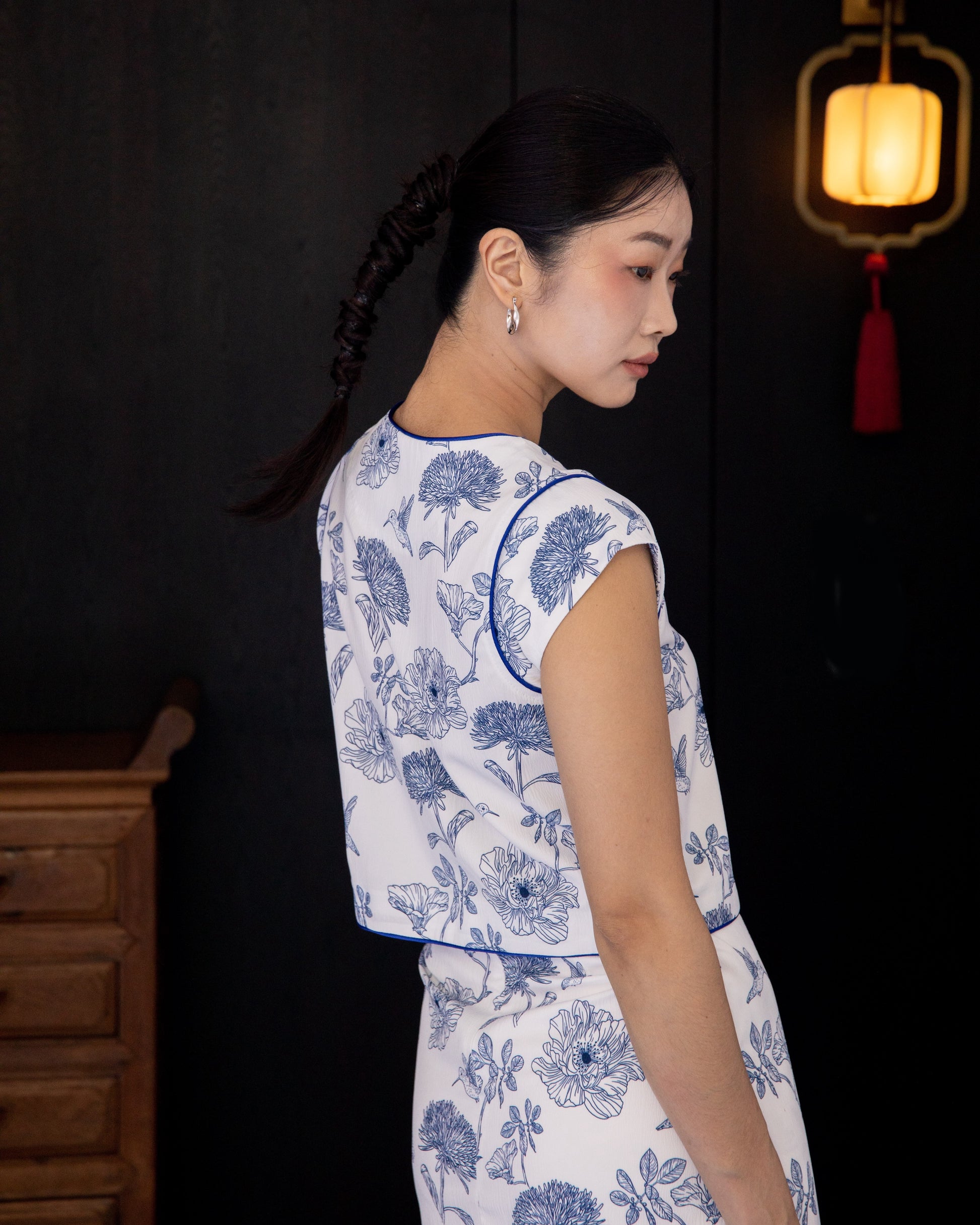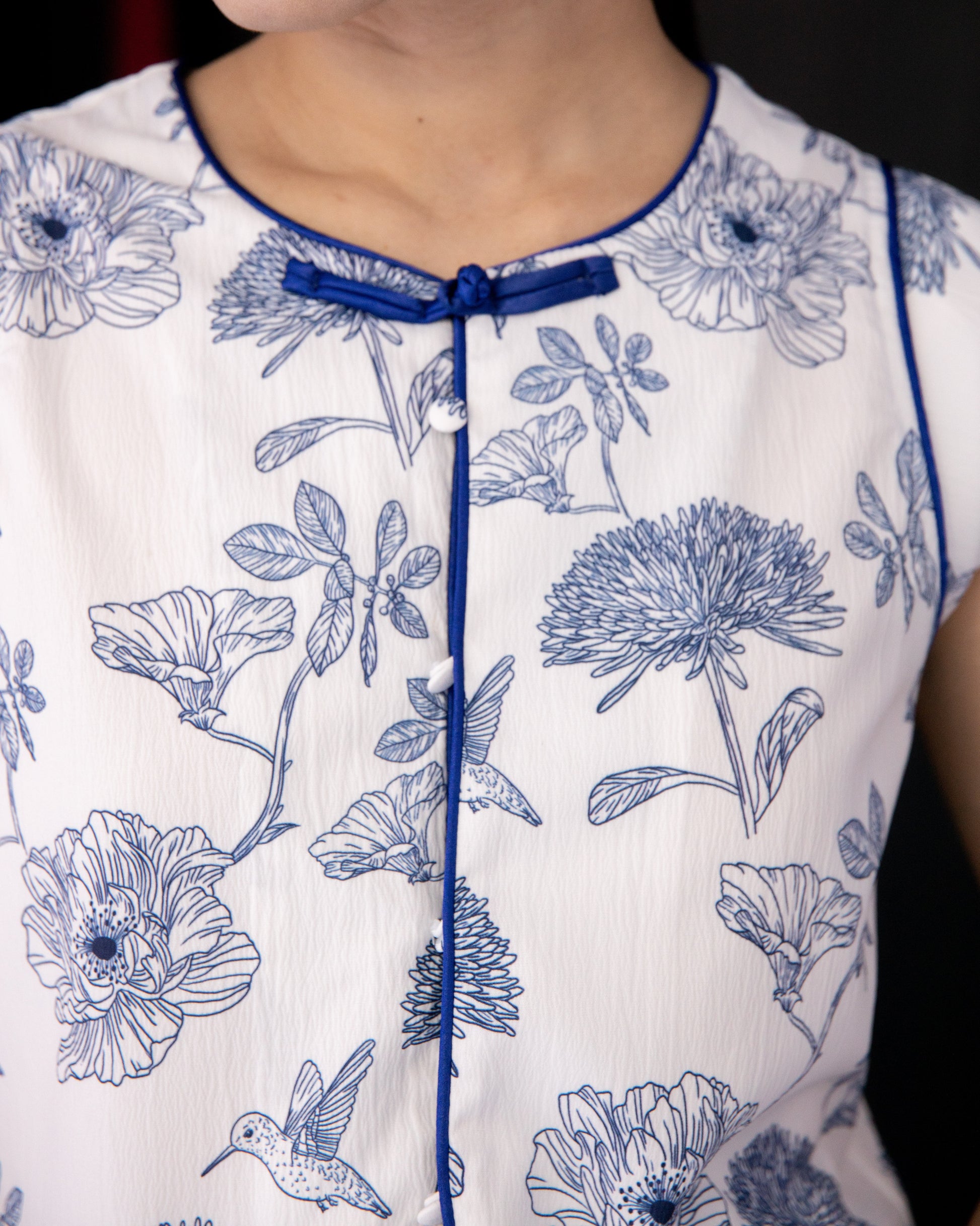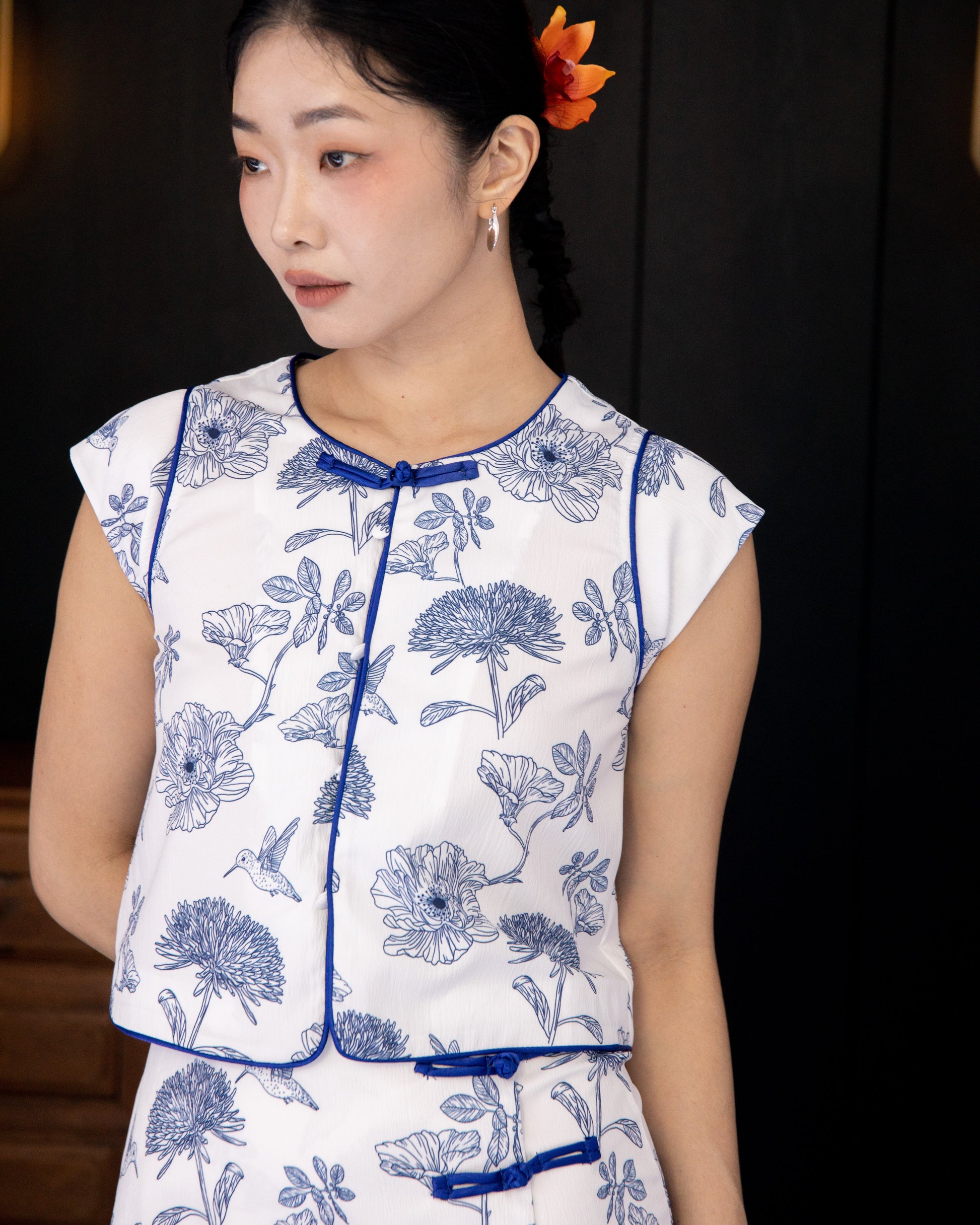 Porcelain Grace Chinese Knot Blouse (Printed)