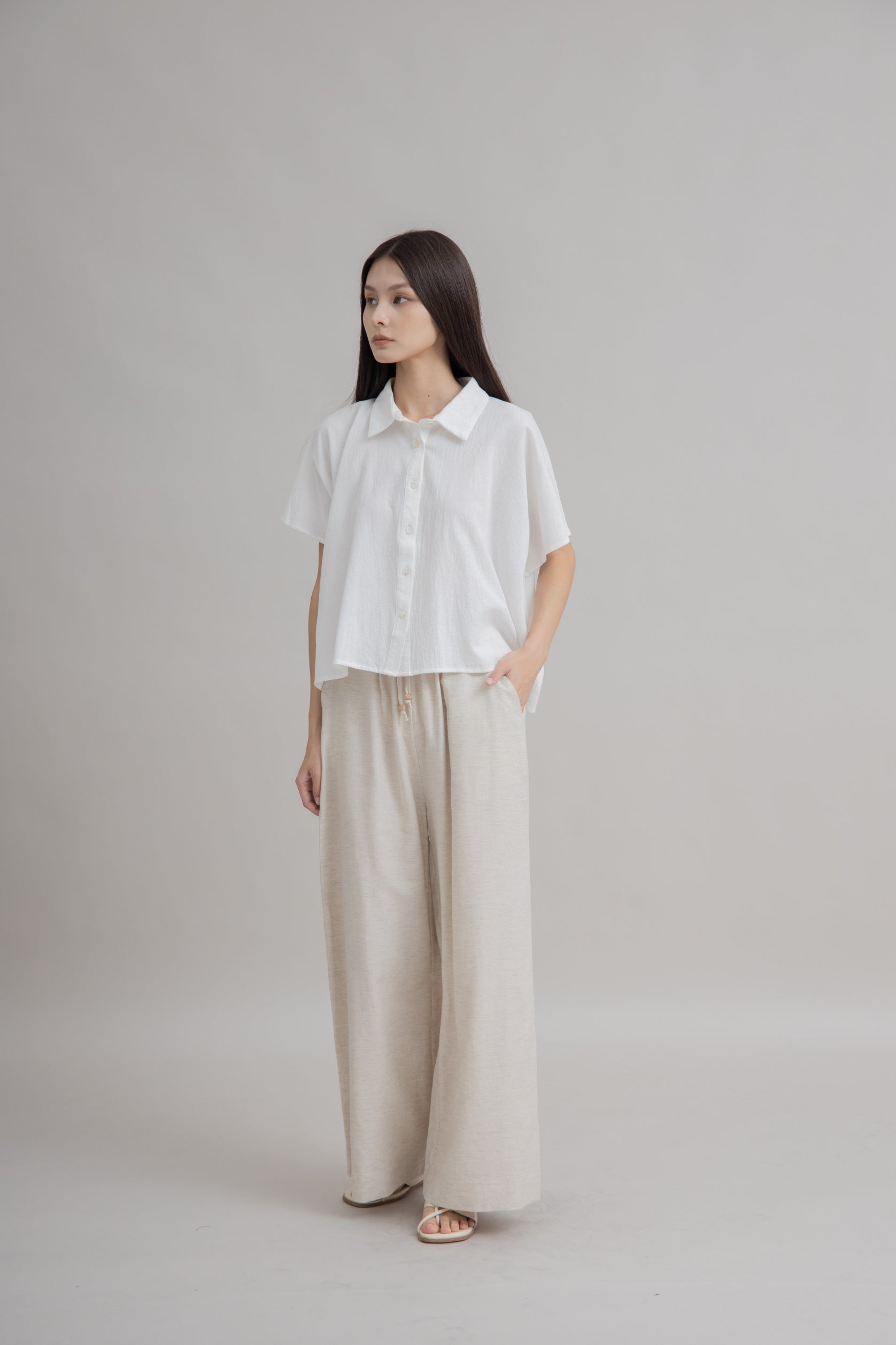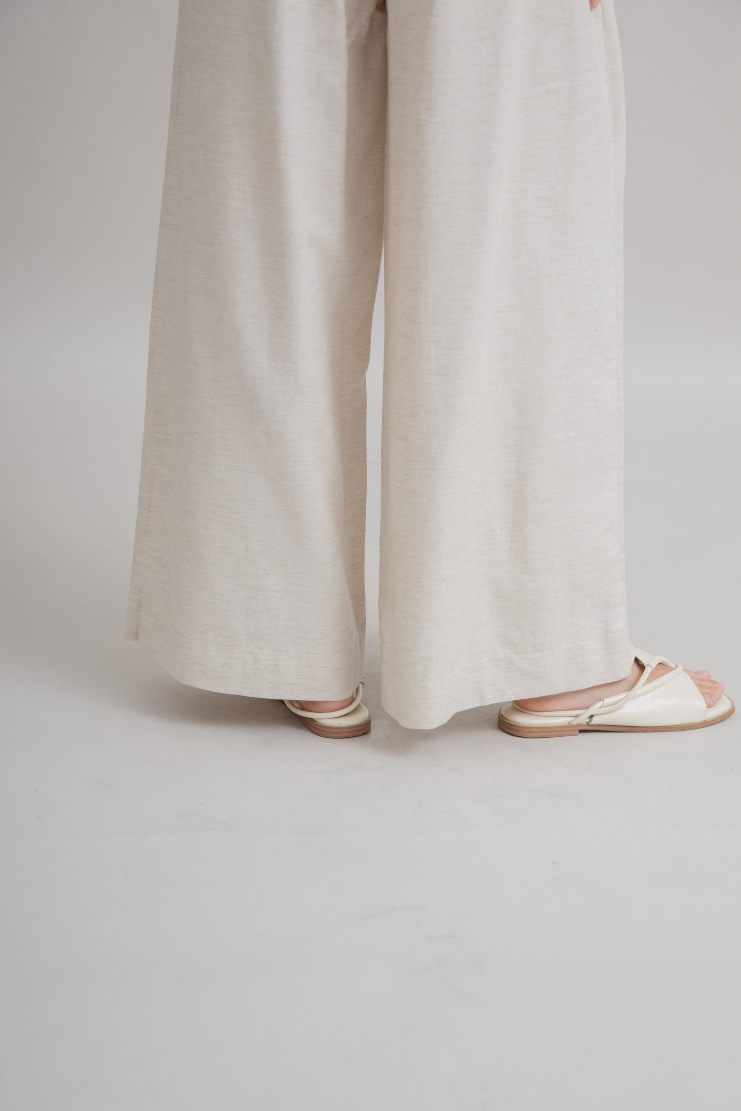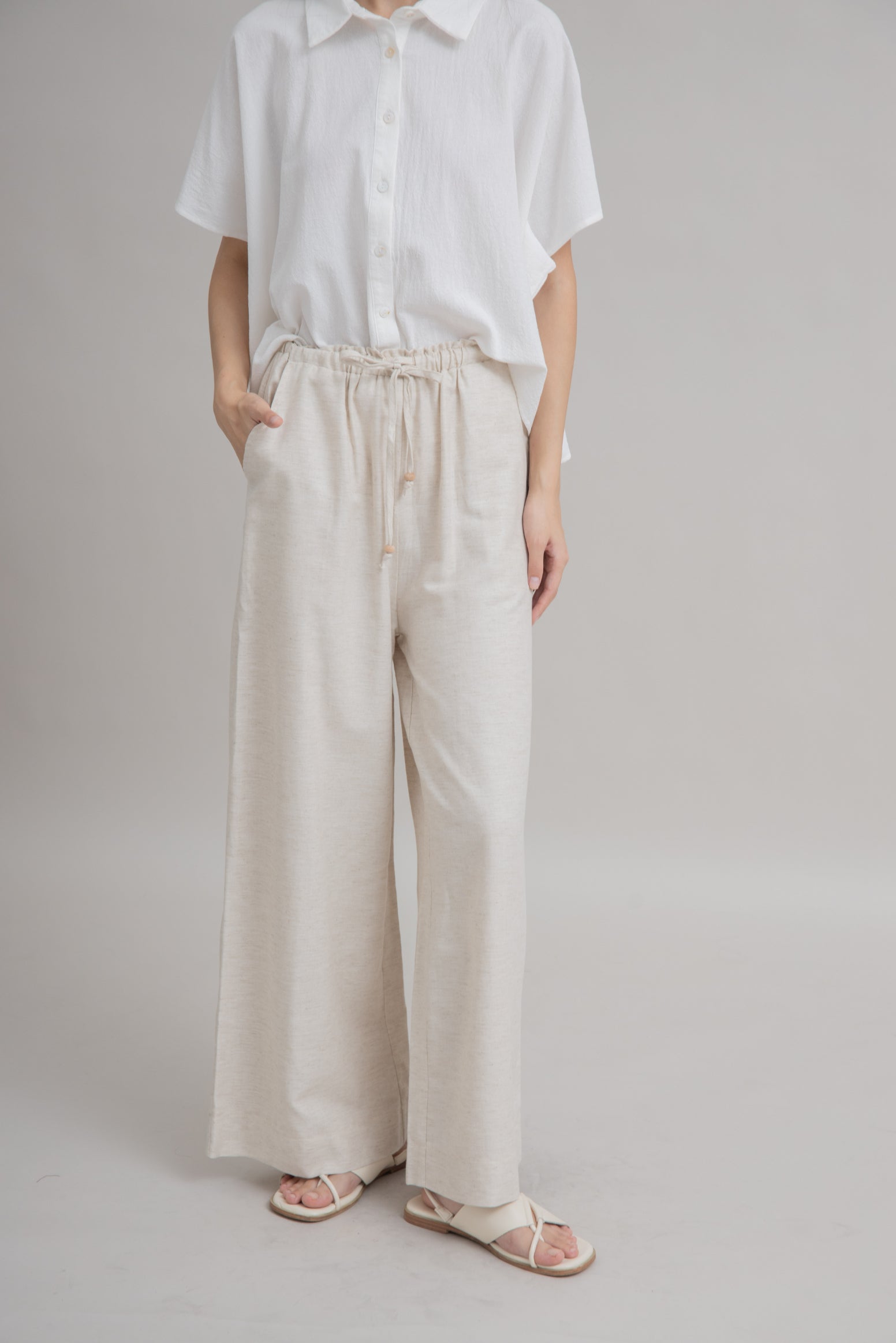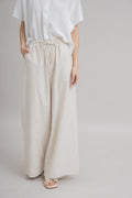 Designed for ease and everyday versatility, these relaxed-fit pants feature a comfortable drawstring waist and a fluid, laid-back silhouette. Made from a breathable blend of 40% Cotton, 40% Tencel, and 20% Linen, they offer a soft, lightweight feel that moves effortlessly with you.