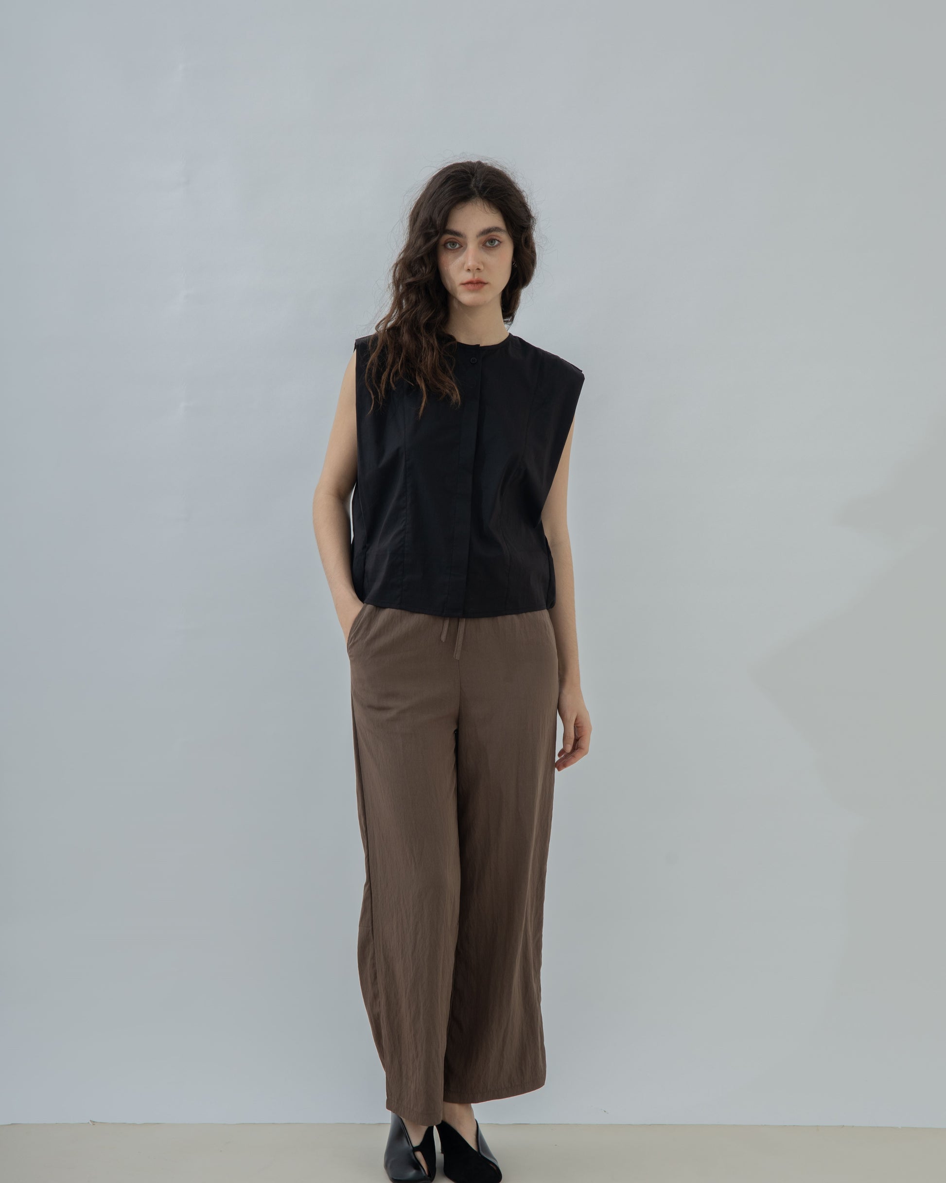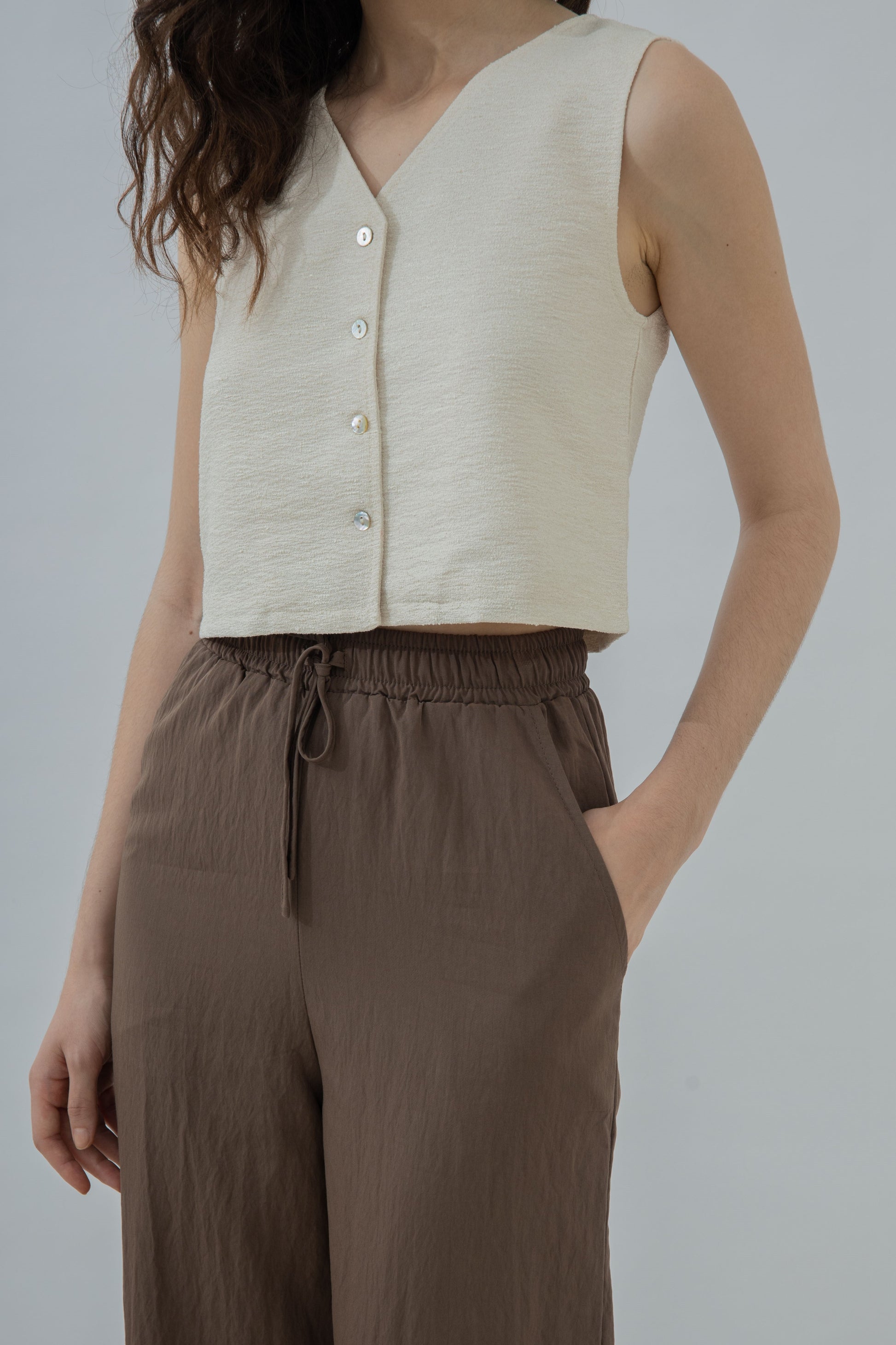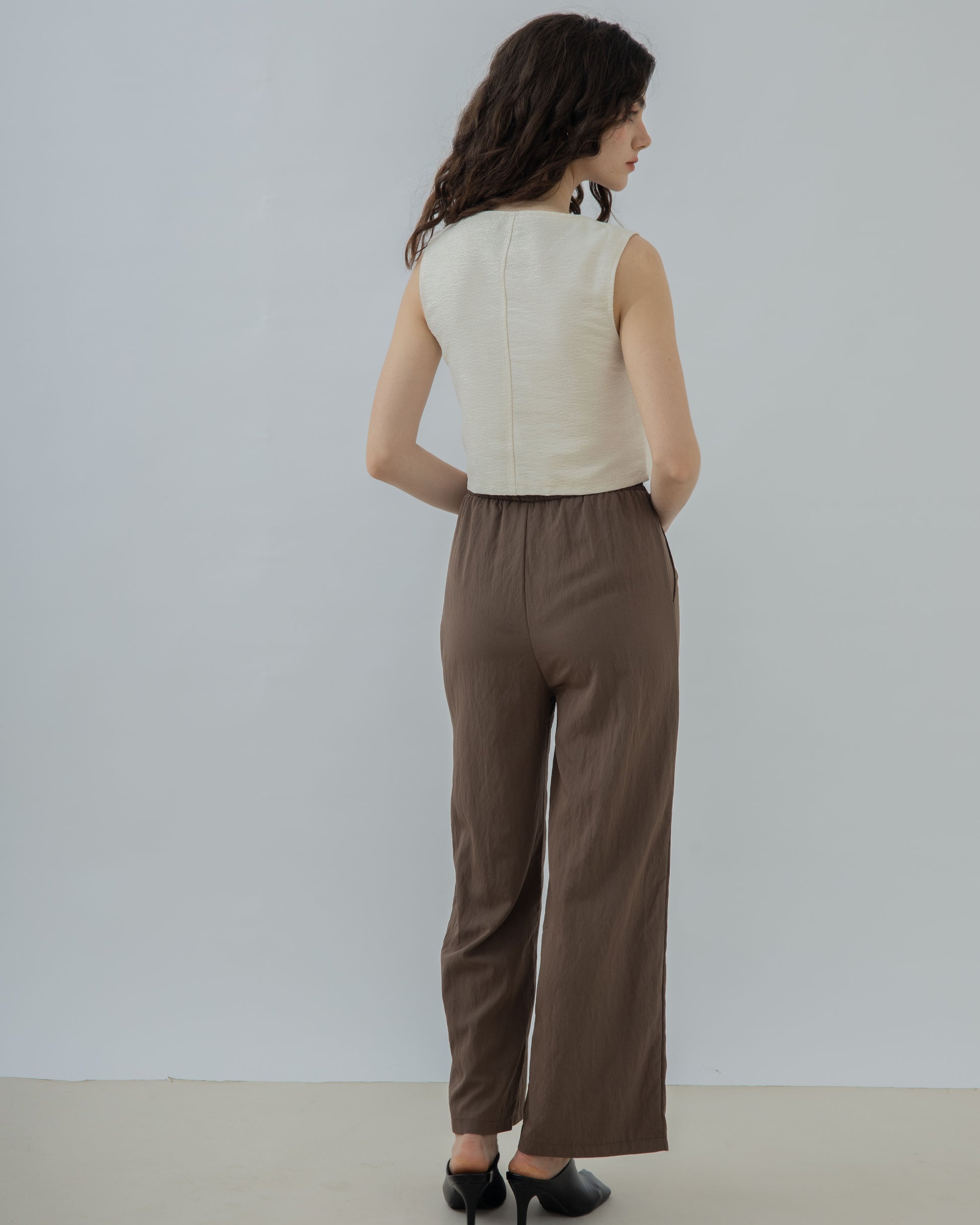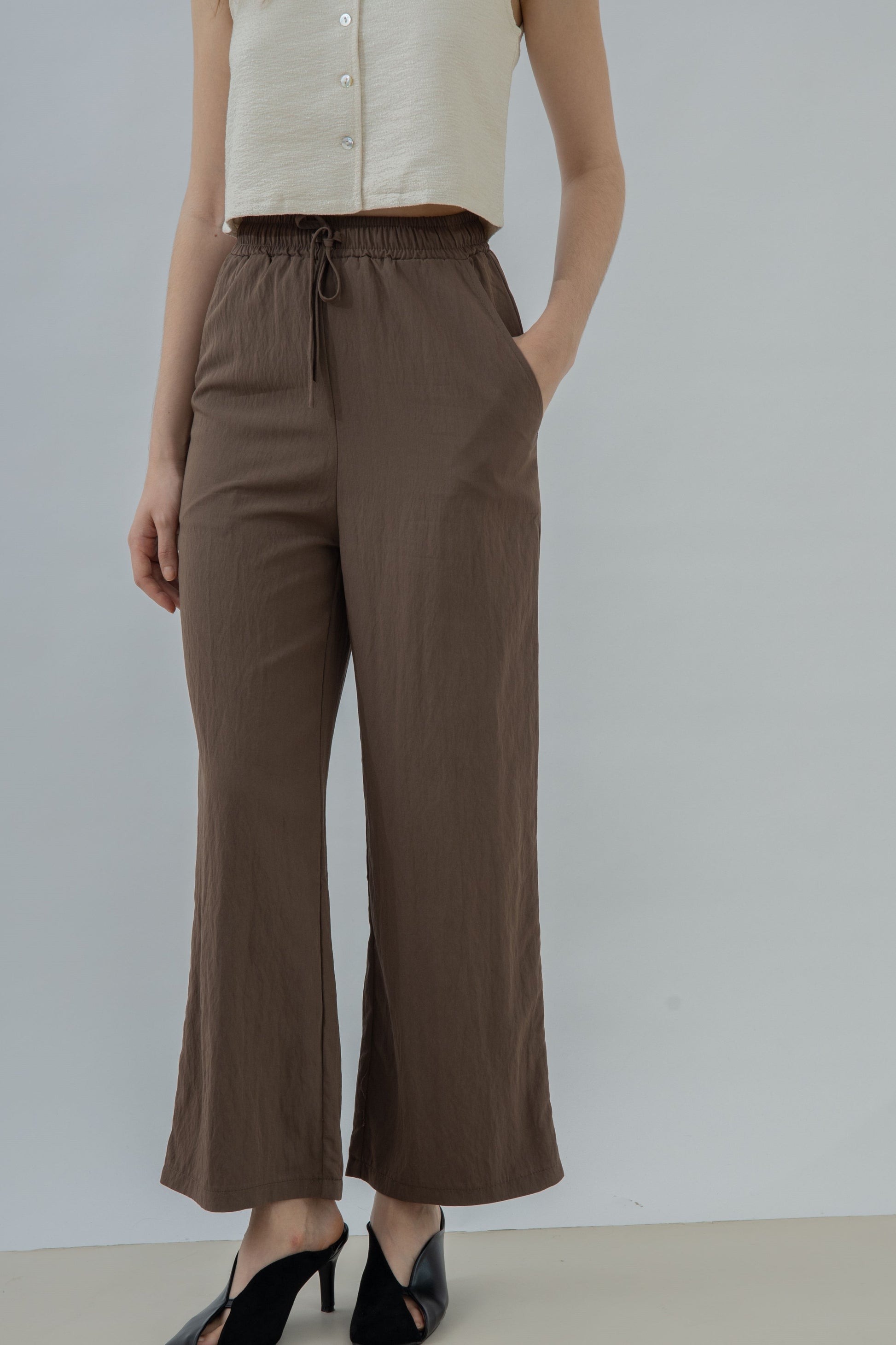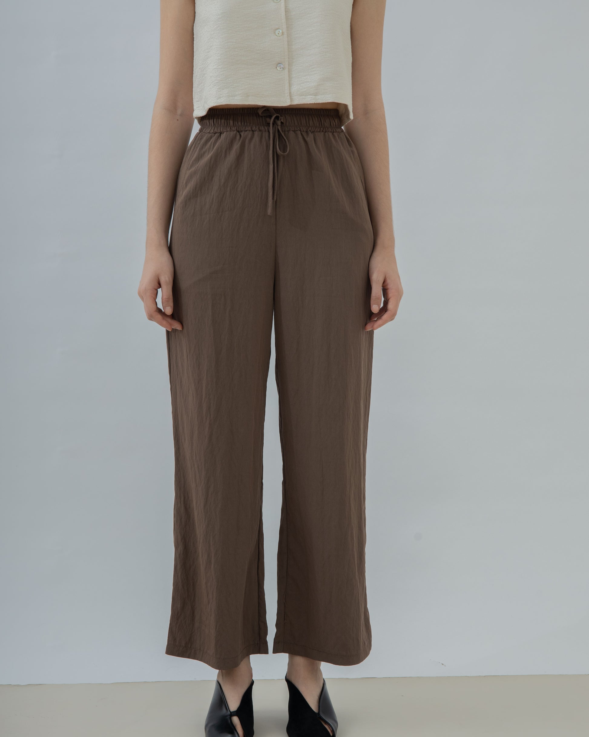 Relaxed Drawstring Straight Cut Trousers (Brown)