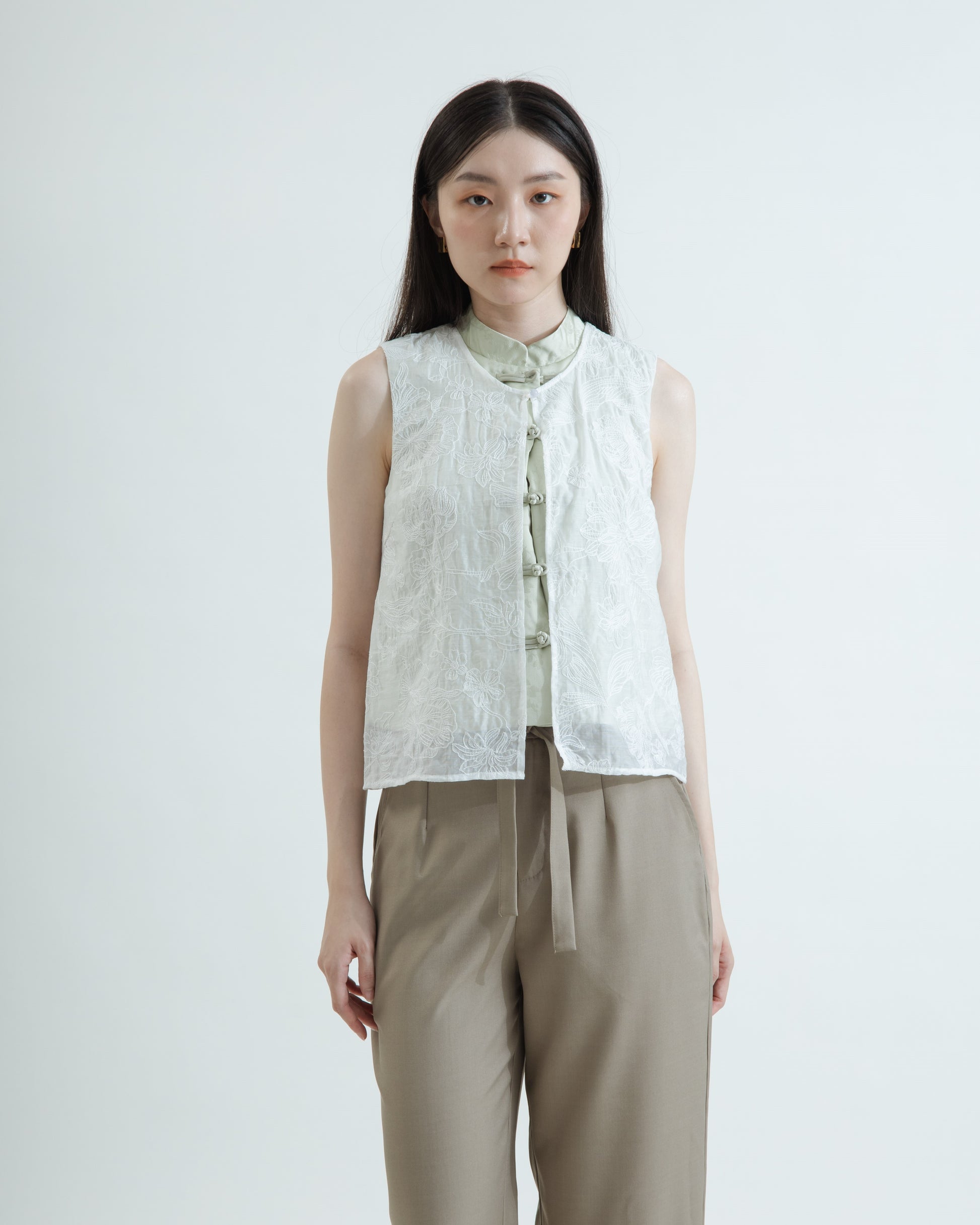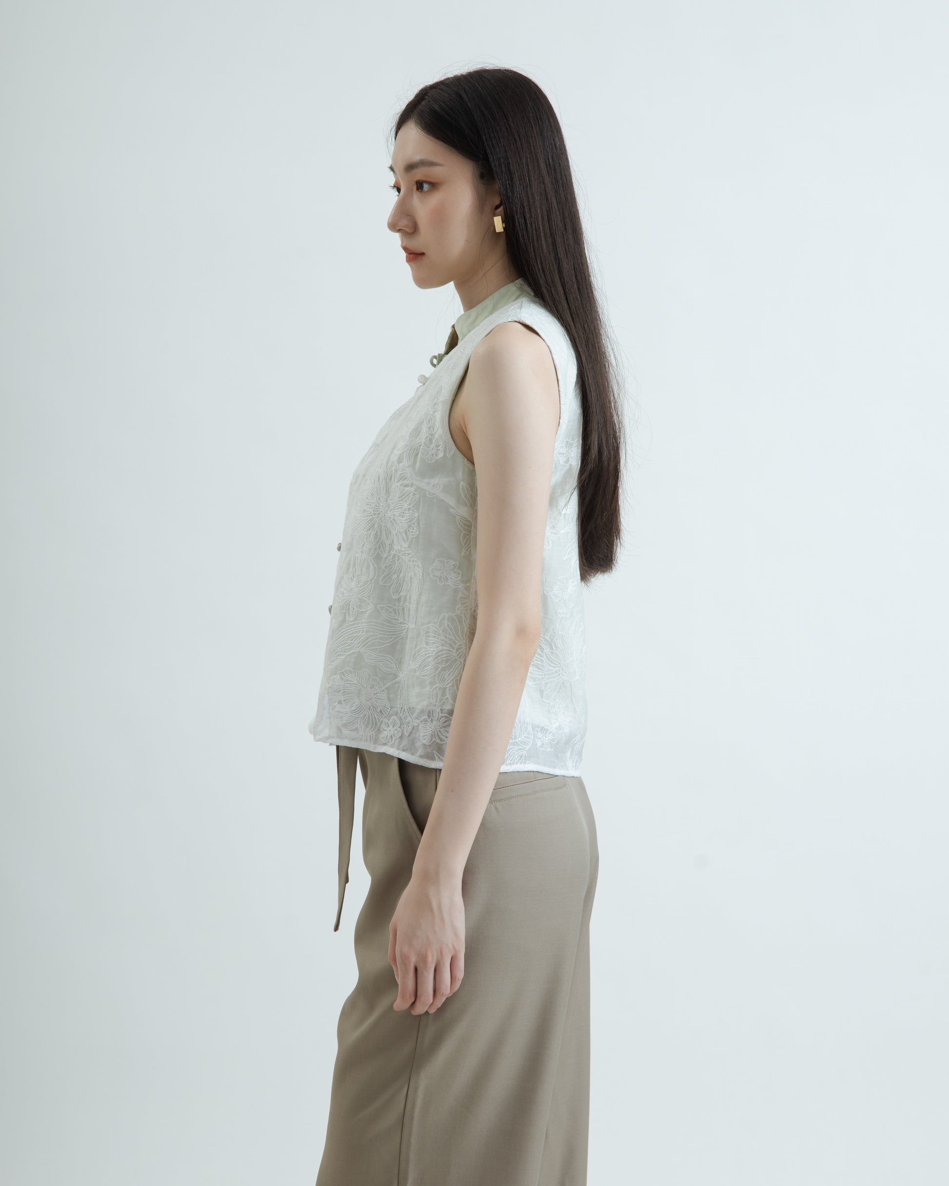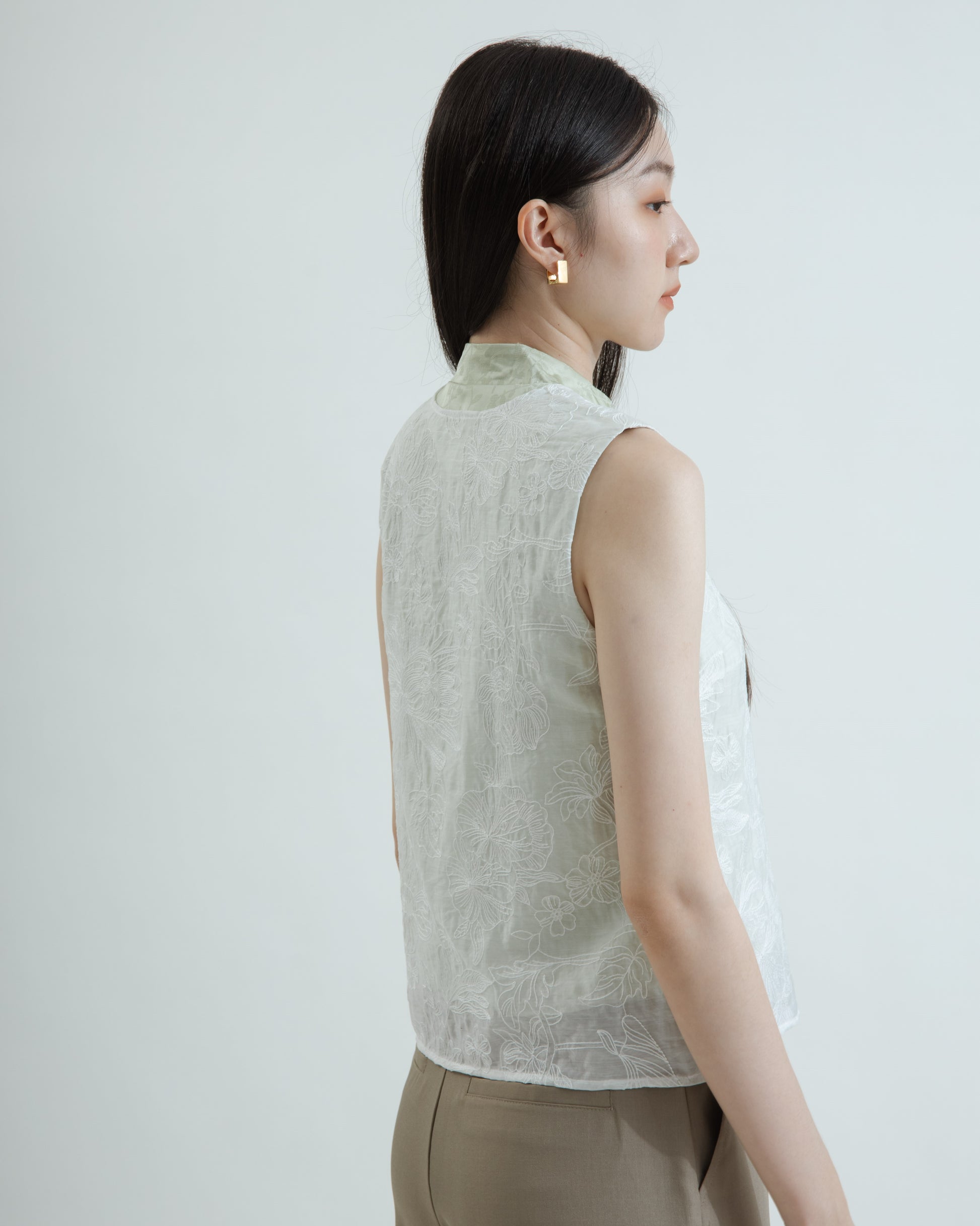Sheer Layered Embroidery Cheongsam Top (Pastel Green)