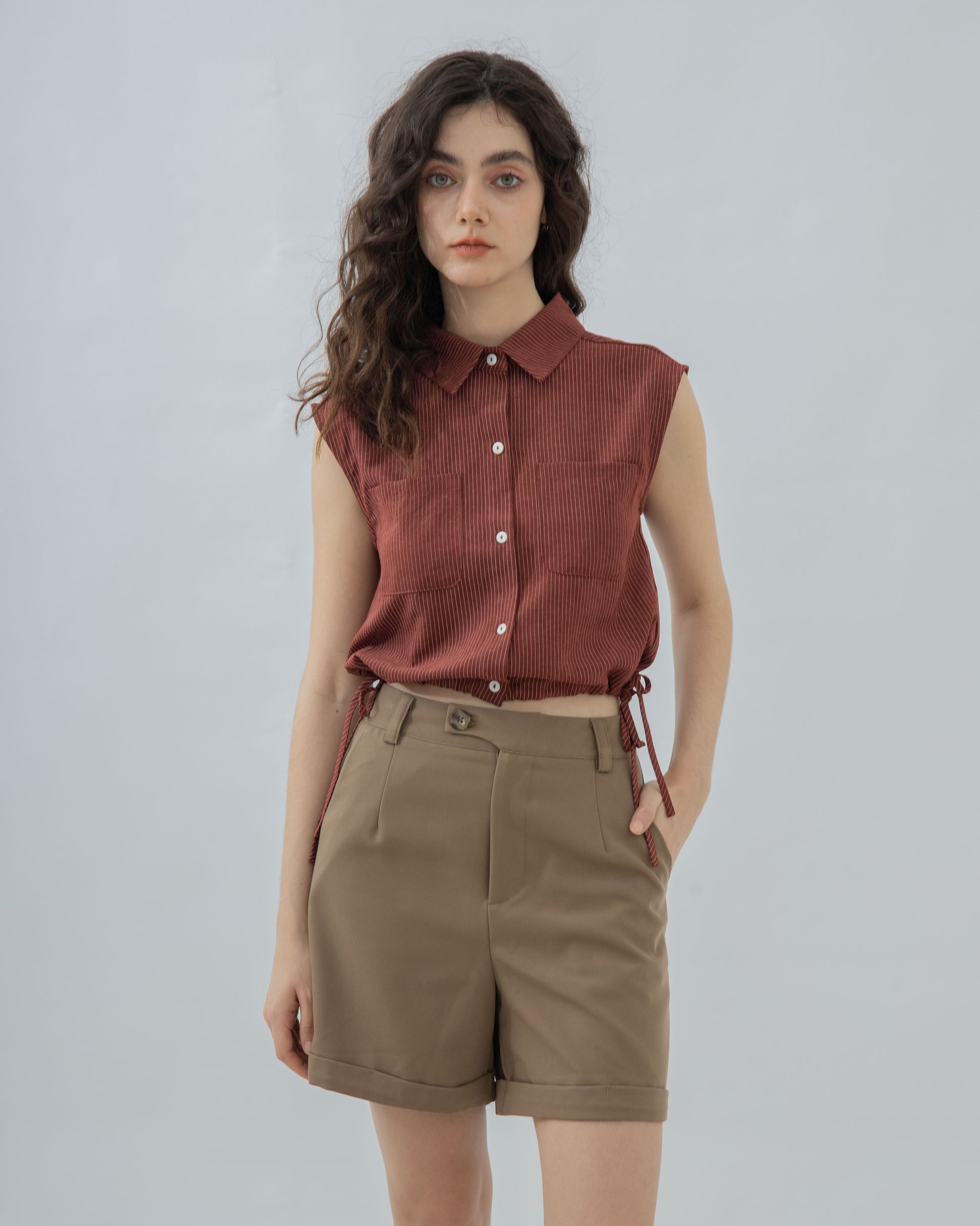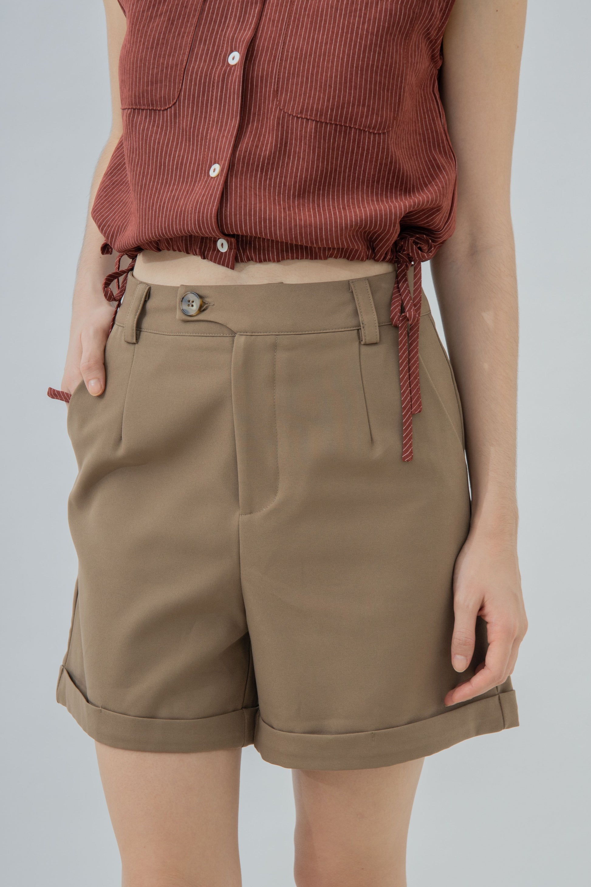Crafted from 92% Polyester and 8% Spandex, the Side Button Folded Bermuda Shorts offer a sleek, tailored look with subtle side buttons and convenient pockets. This premium design flatters with a slimming effect and provides full hip coverage, giving you a polished yet comfortable fit for any occasion.