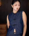 Sleeveless Cheongsam Denim Top (Denim)