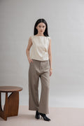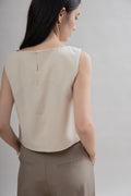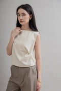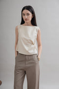 This sleek sleeveless top brings a fresh twist to your wardrobe with its subtle scrunched detail around the bottom right hem. Made from a soft and stretchy blend of 95% polyester and 5% spandex, it hugs just right while offering all-day comfort. The asymmetrical ruching adds texture and a flattering drape—perfect for styling solo or layering up with ease.