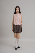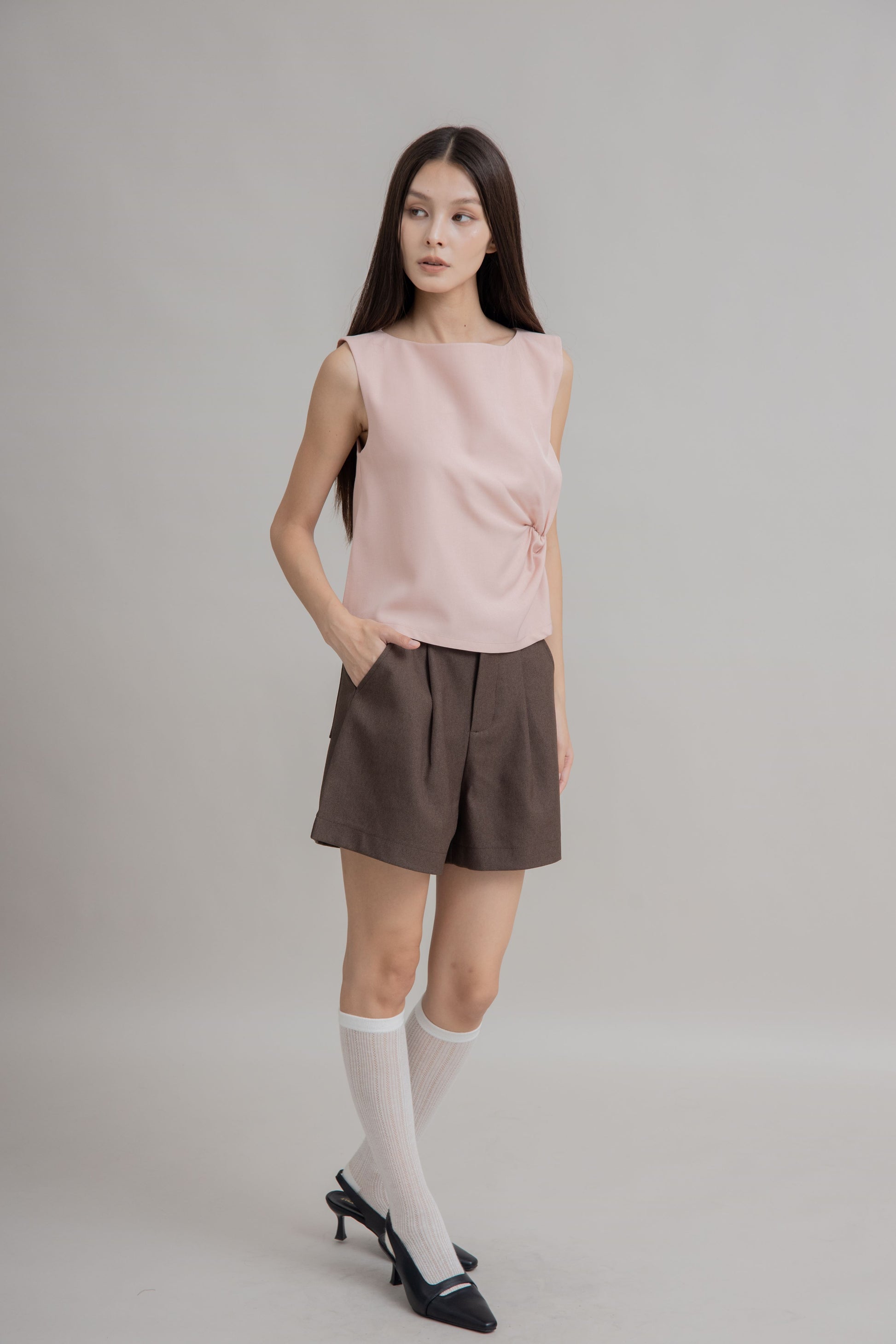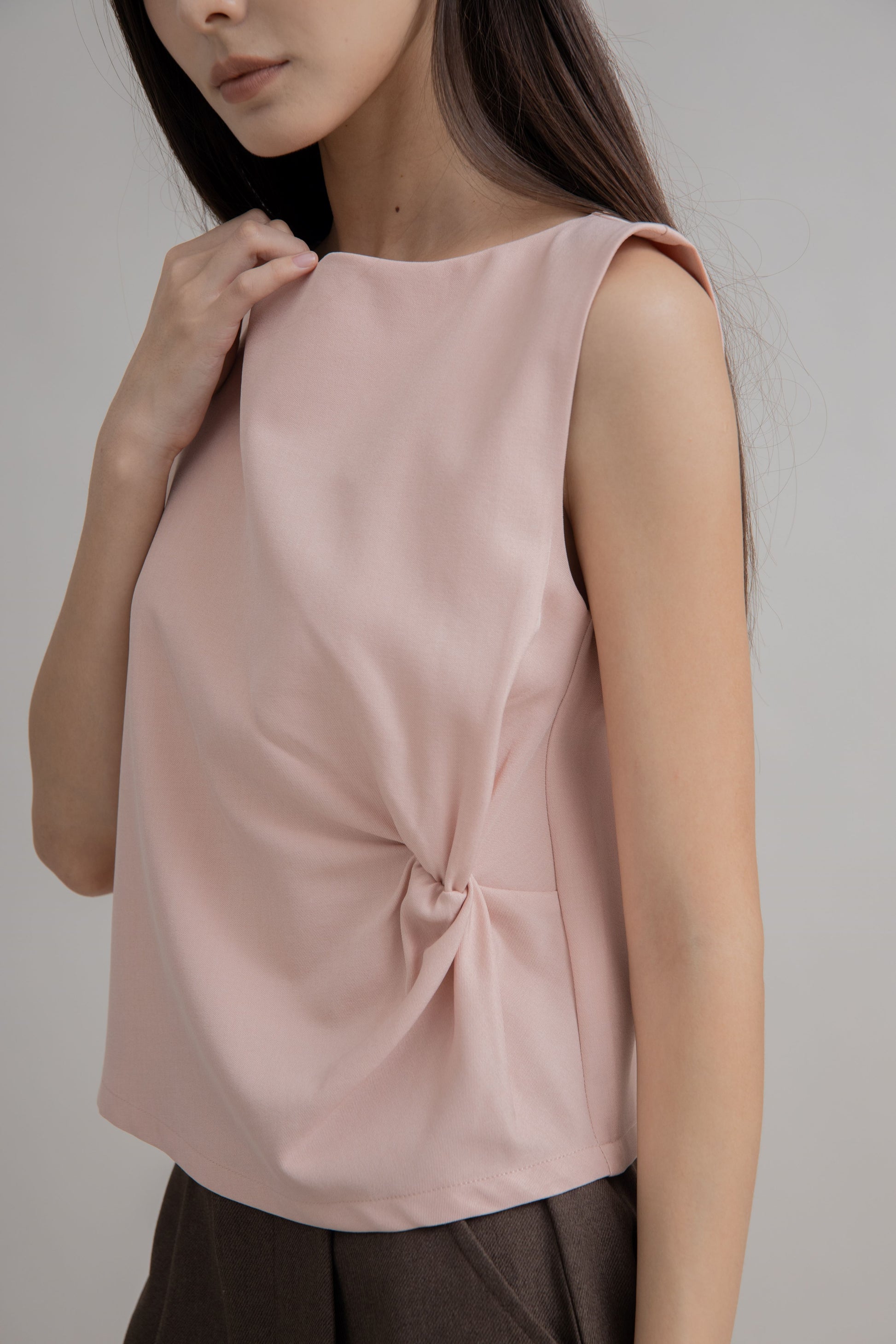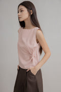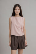 This sleek sleeveless top brings a fresh twist to your wardrobe with its subtle scrunched detail around the bottom right hem. Made from a soft and stretchy blend of 95% polyester and 5% spandex, it hugs just right while offering all-day comfort. The asymmetrical ruching adds texture and a flattering drape—perfect for styling solo or layering up with ease.