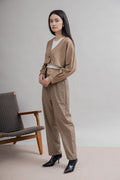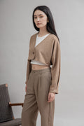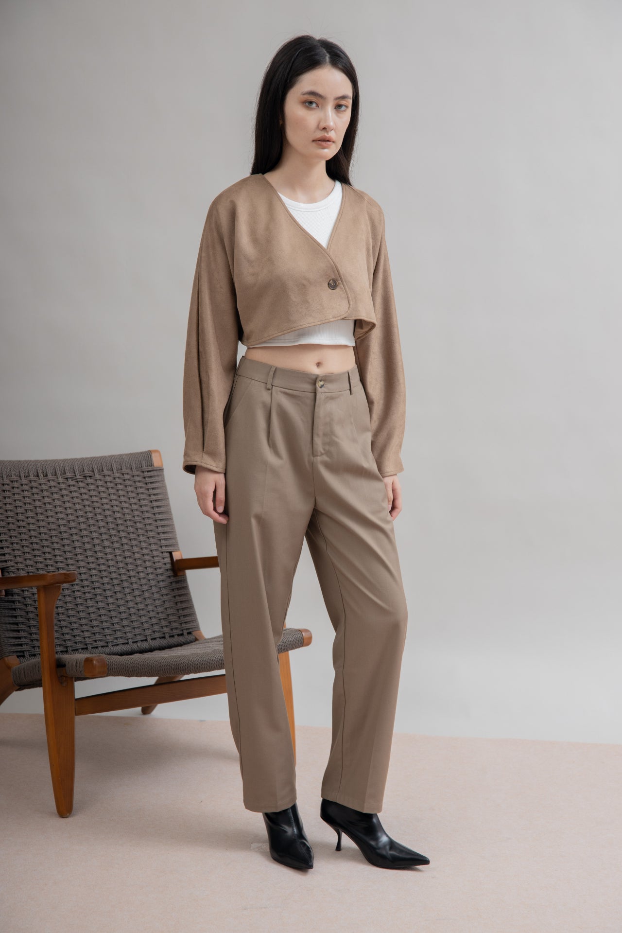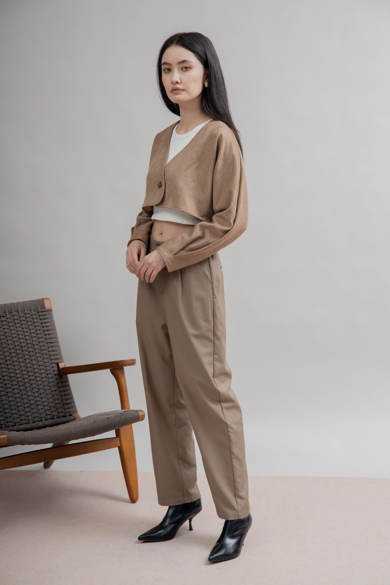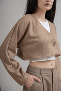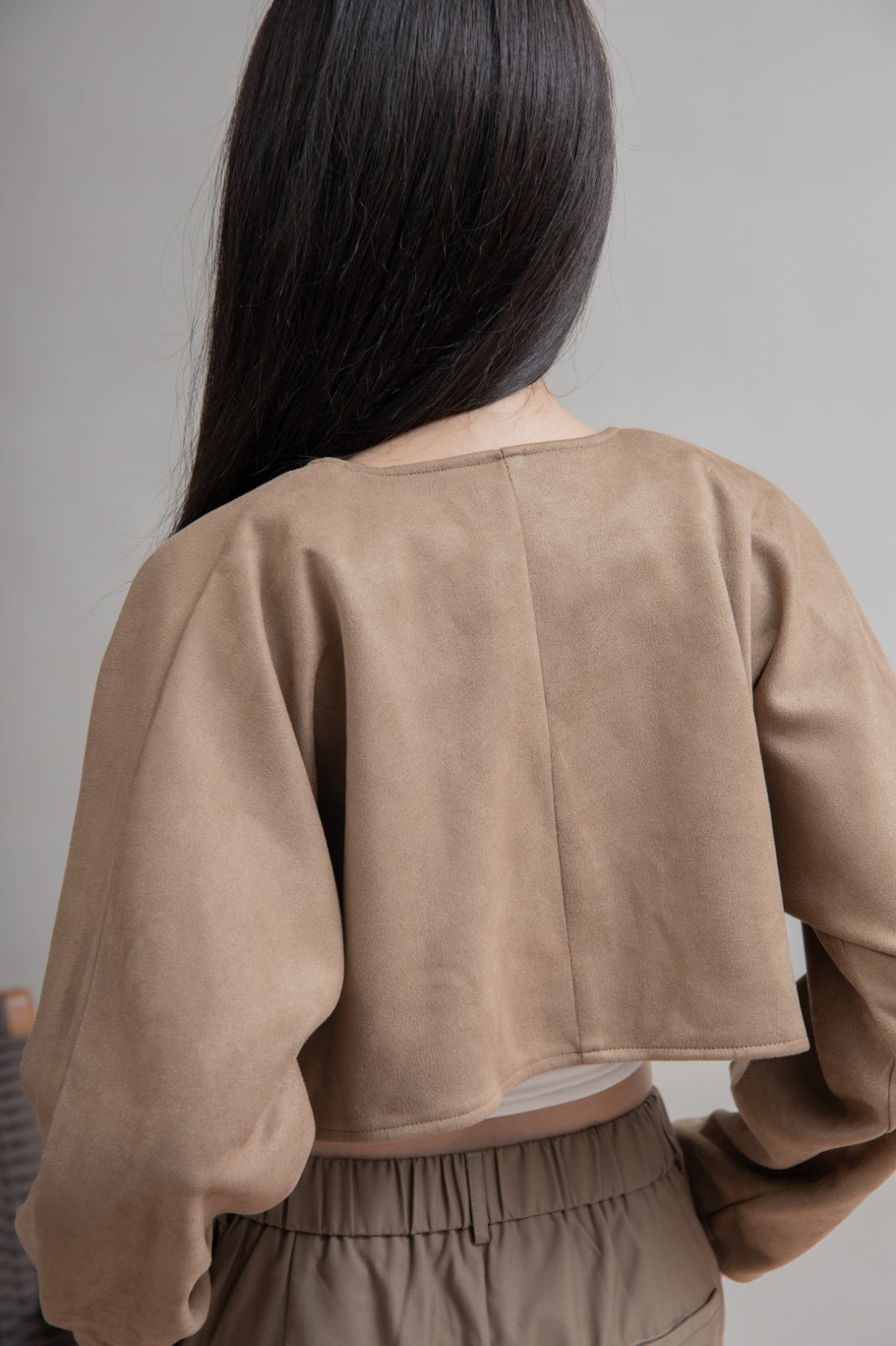 Suede Folded Sleeve Crop Jacket (Khaki Brown)