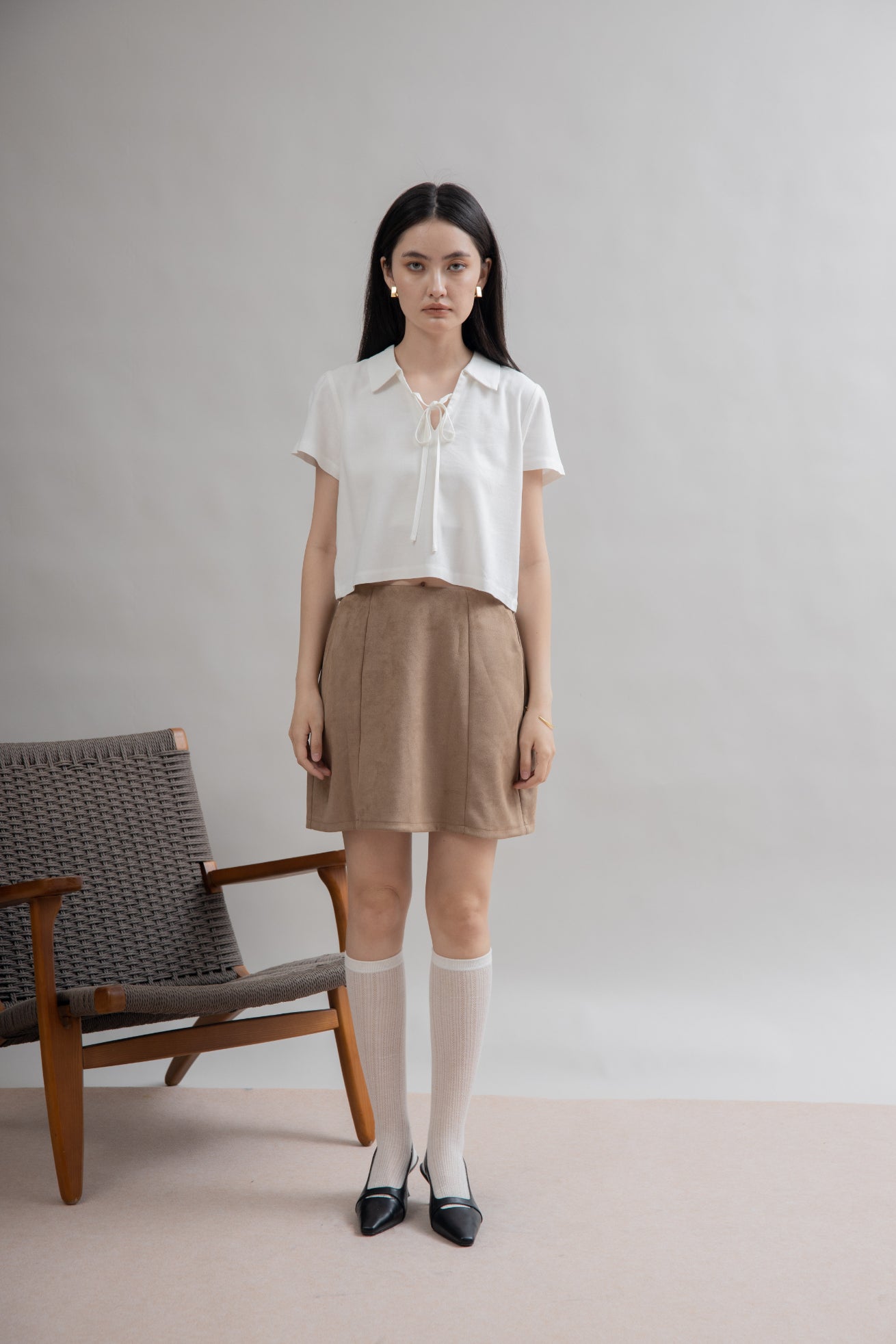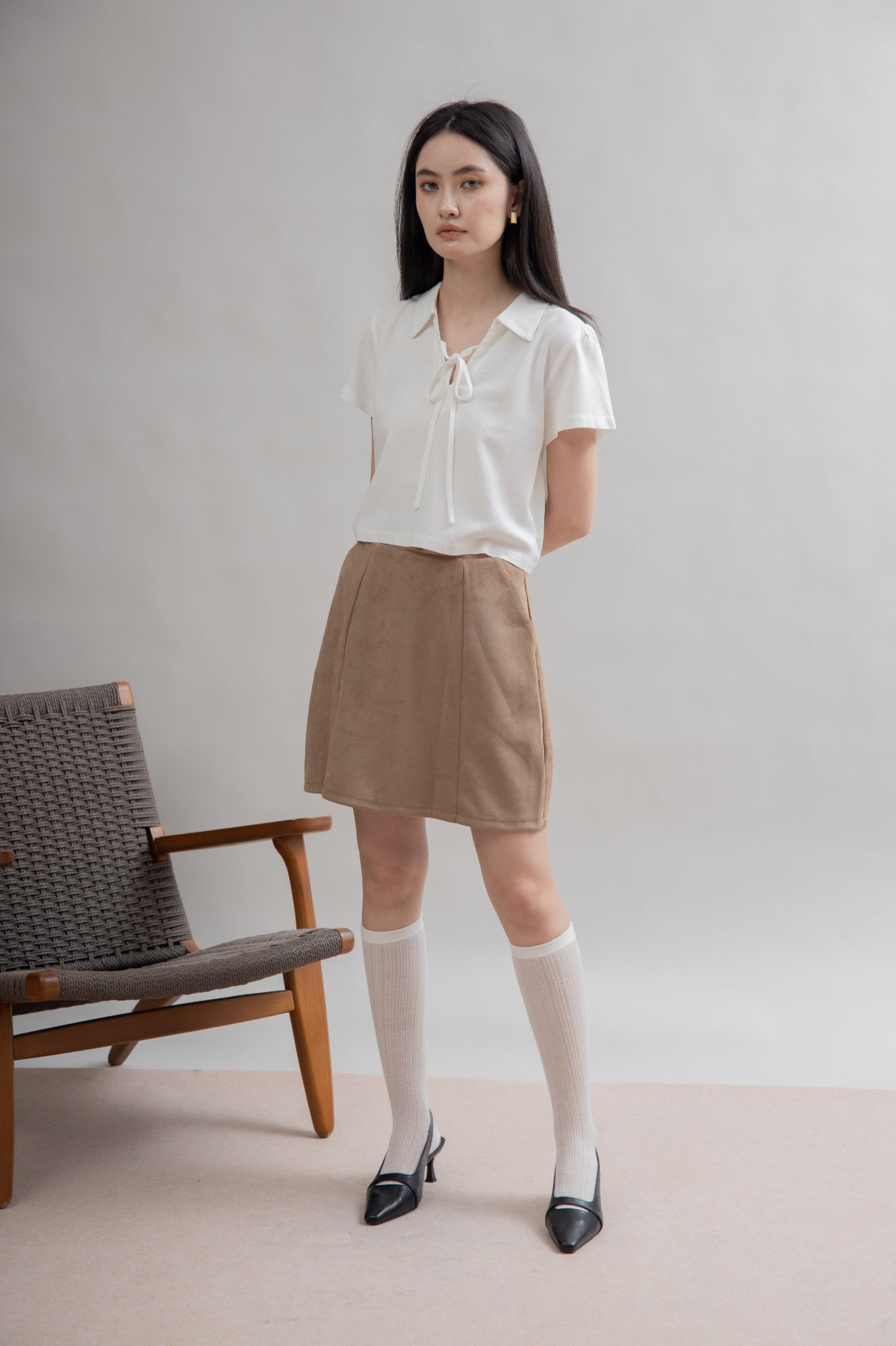 A classic suede short skirt designed with clean panel lines for a structured yet versatile look. Crafted from 97% Polyester and 3% Spandex, it offers a smooth finish with a hint of stretch for comfort and ease of movement. A timeless piece that pairs effortlessly with both casual tops and tailored layers.