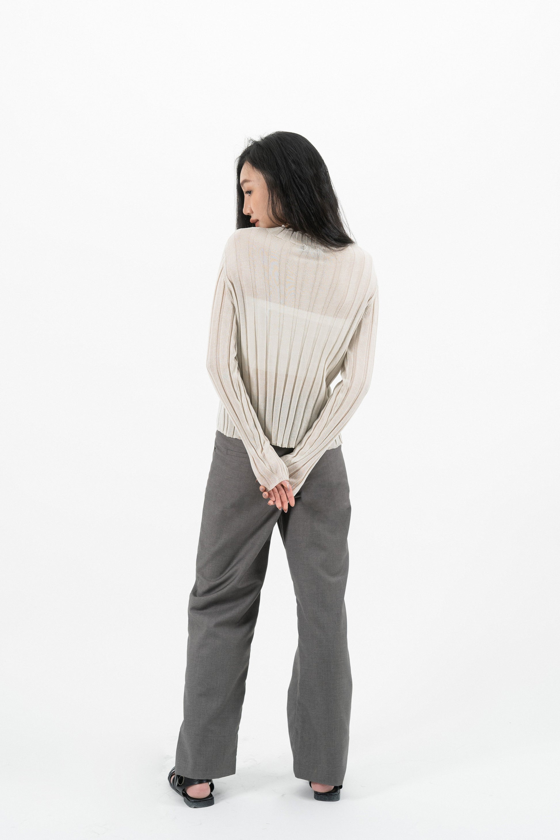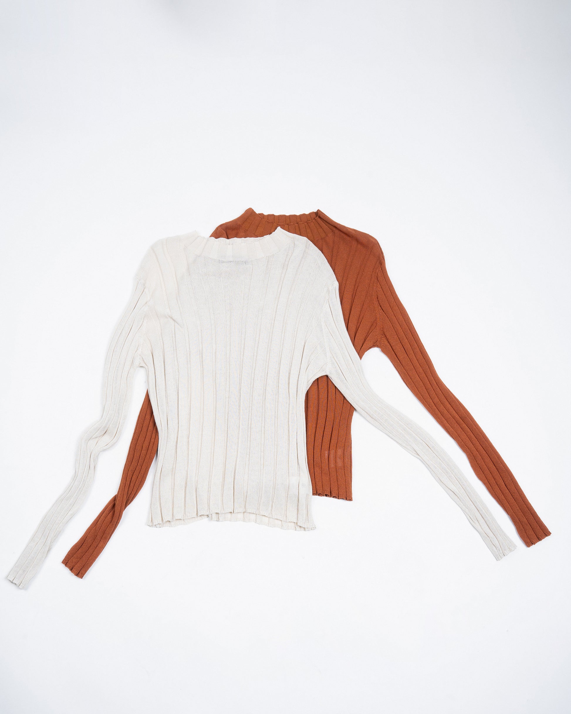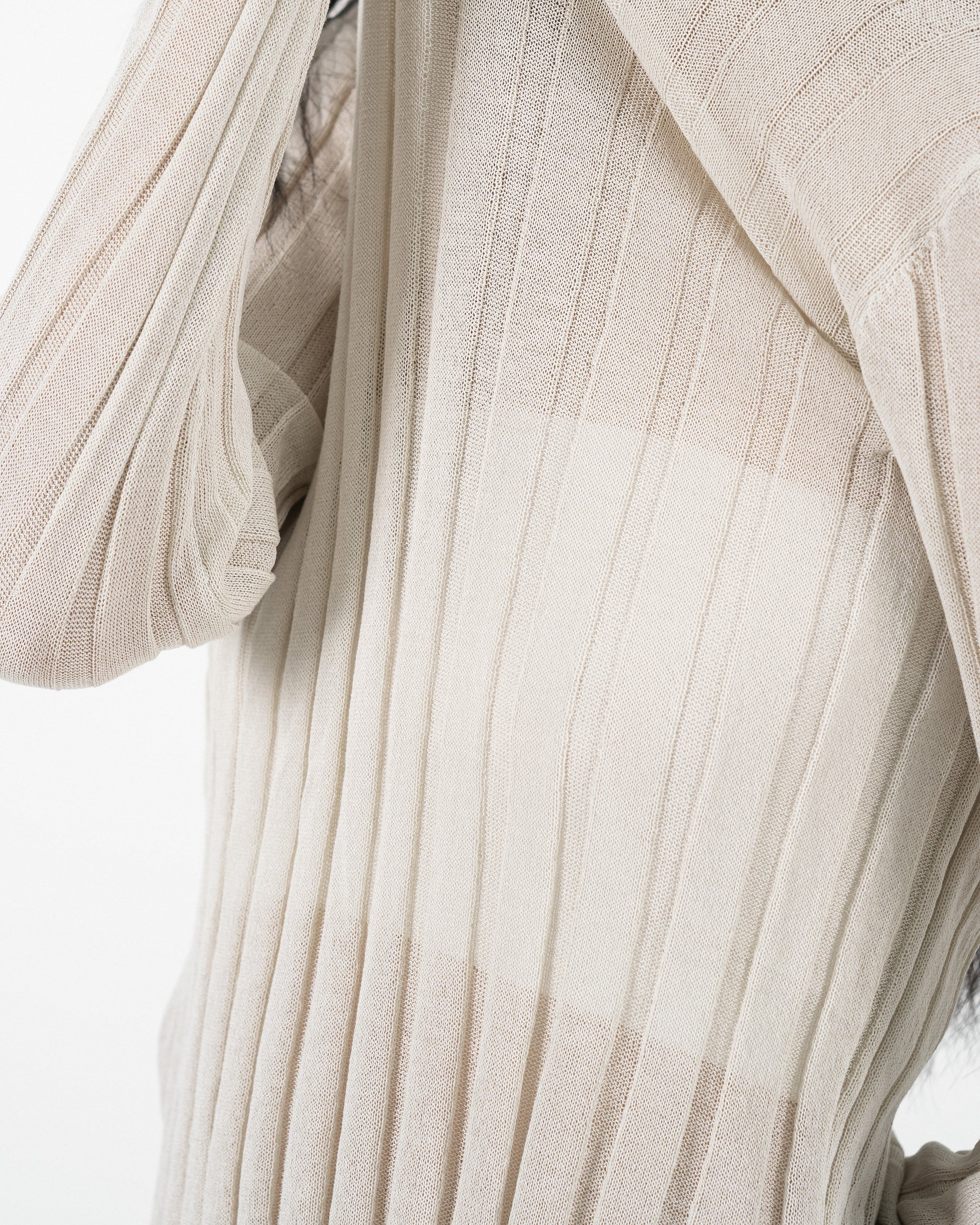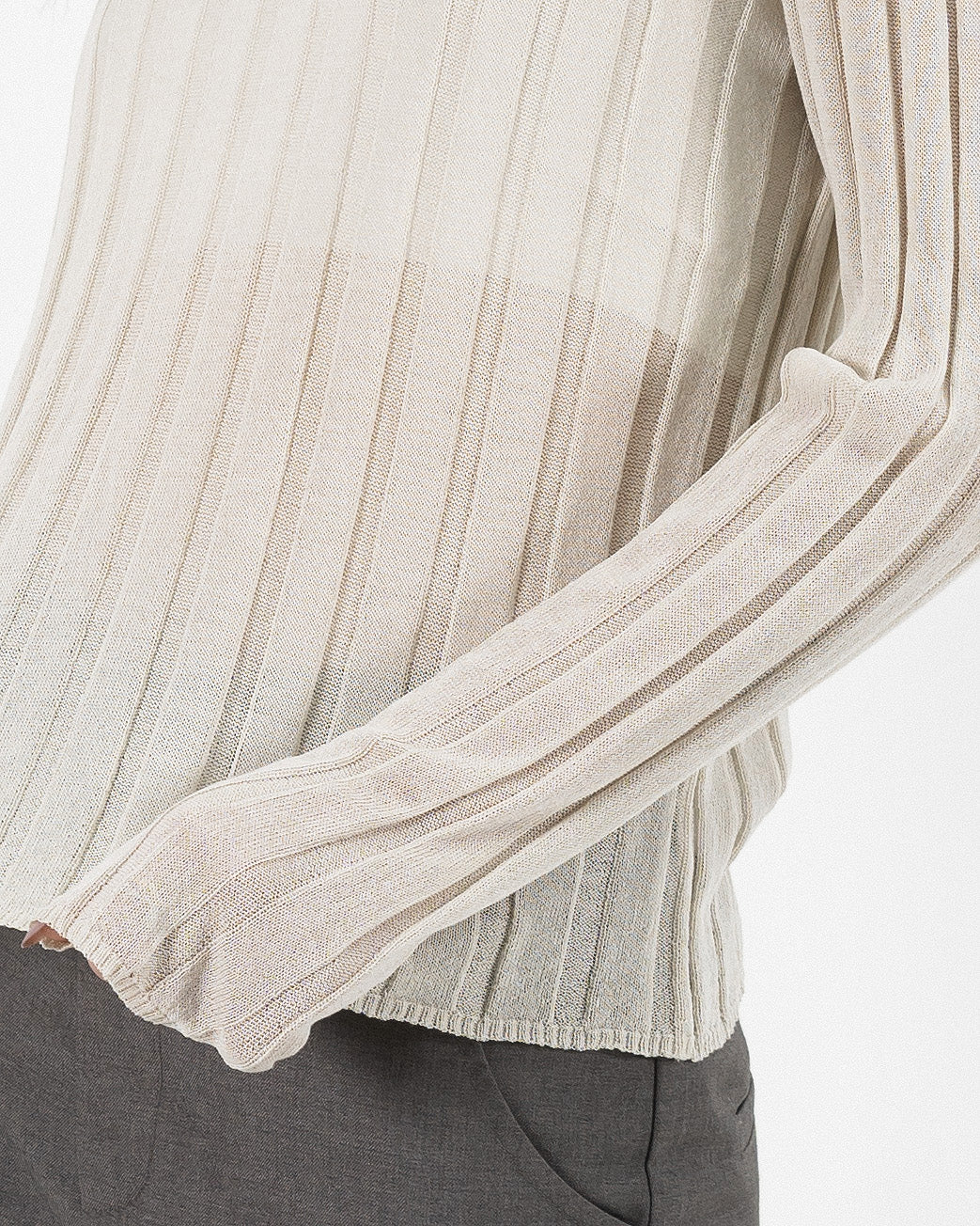 Turtleneck Sheer Ribbed Knit Top (Beige)