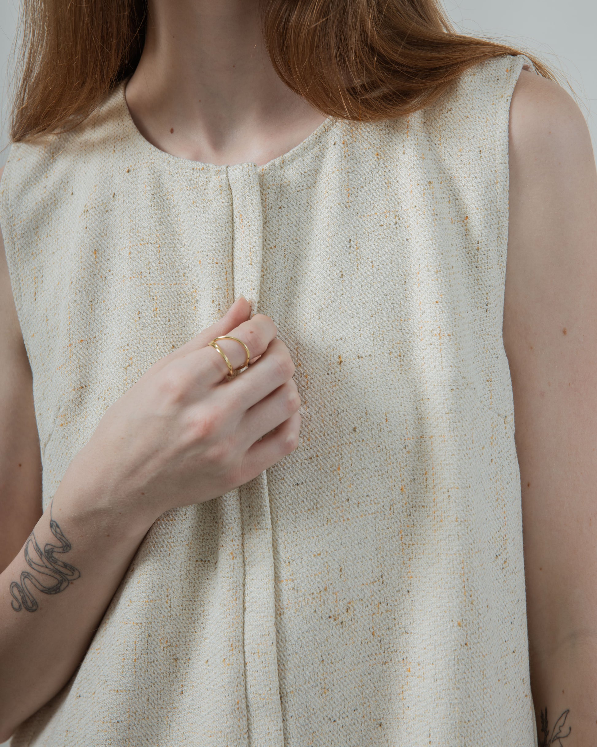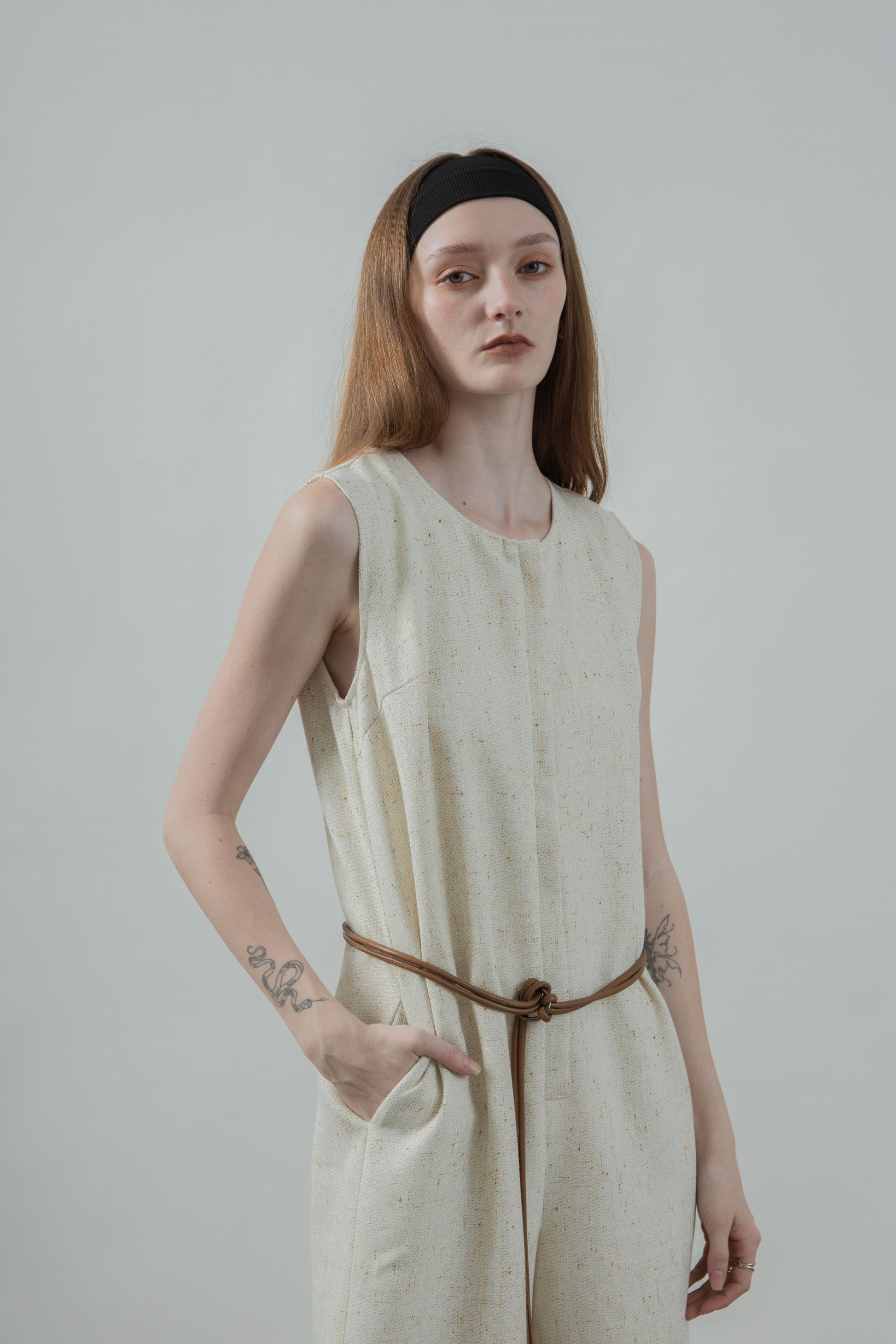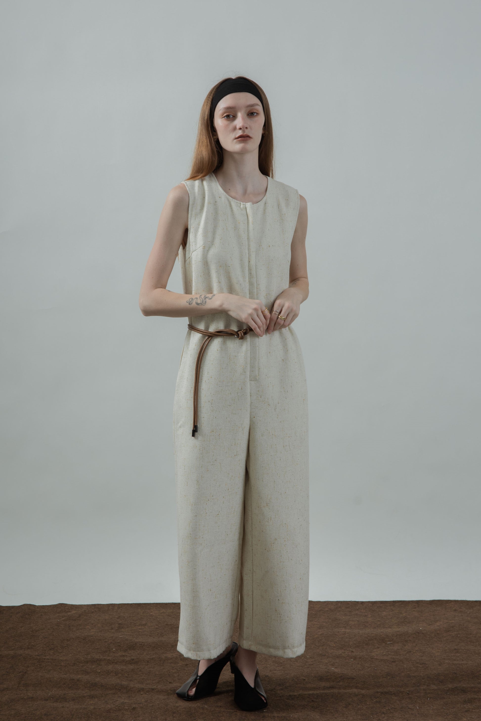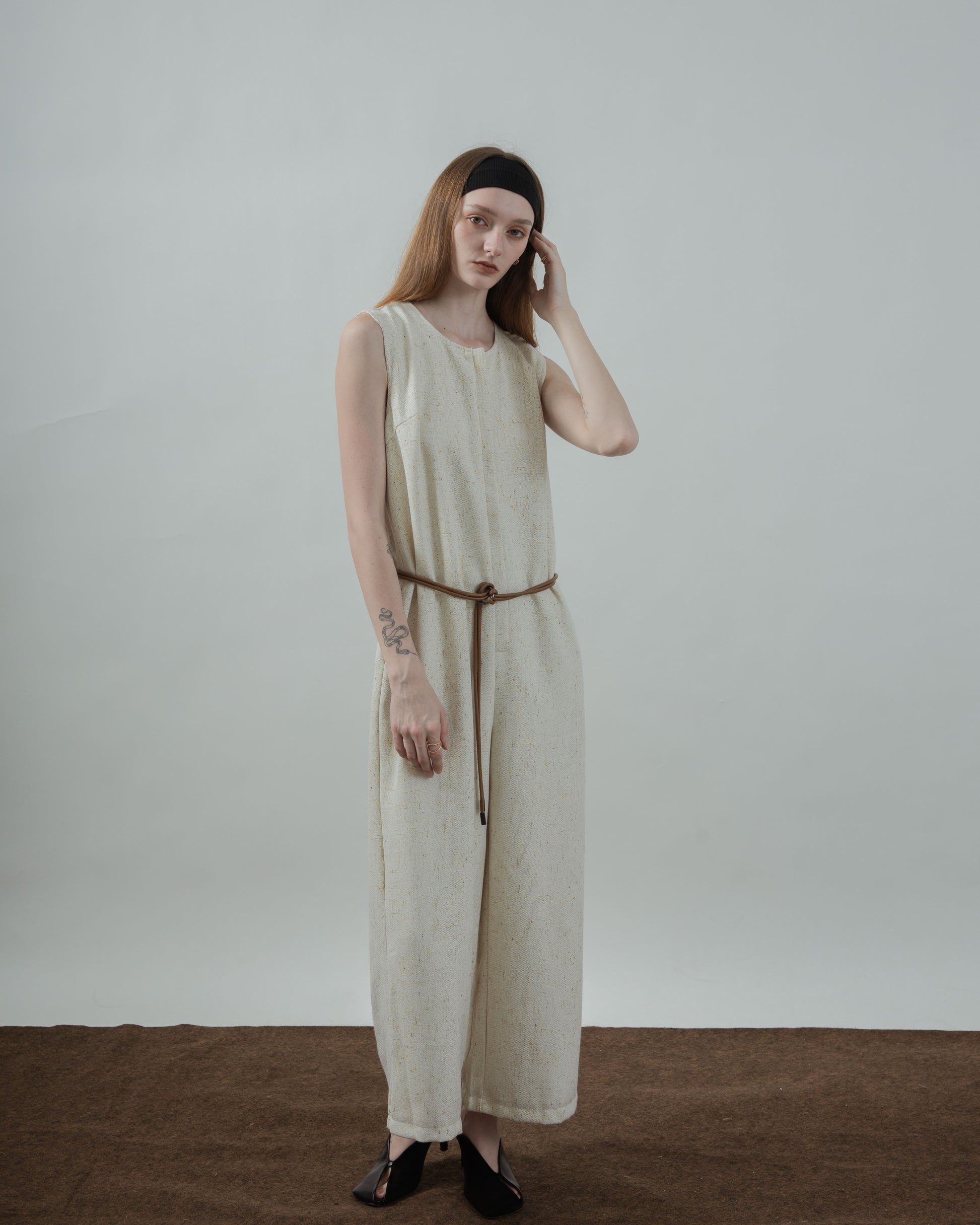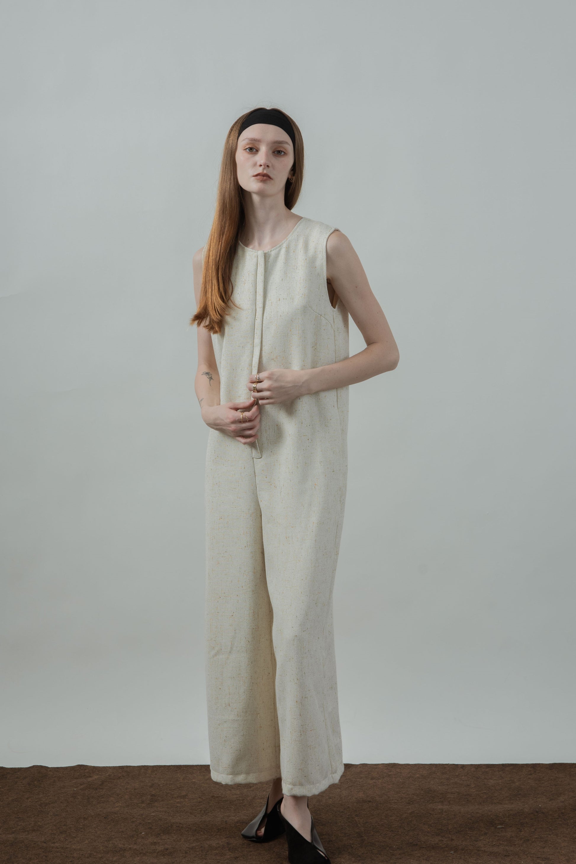 Tweed Sleeveless Loose Jumpsuit (Beige Mix)