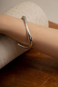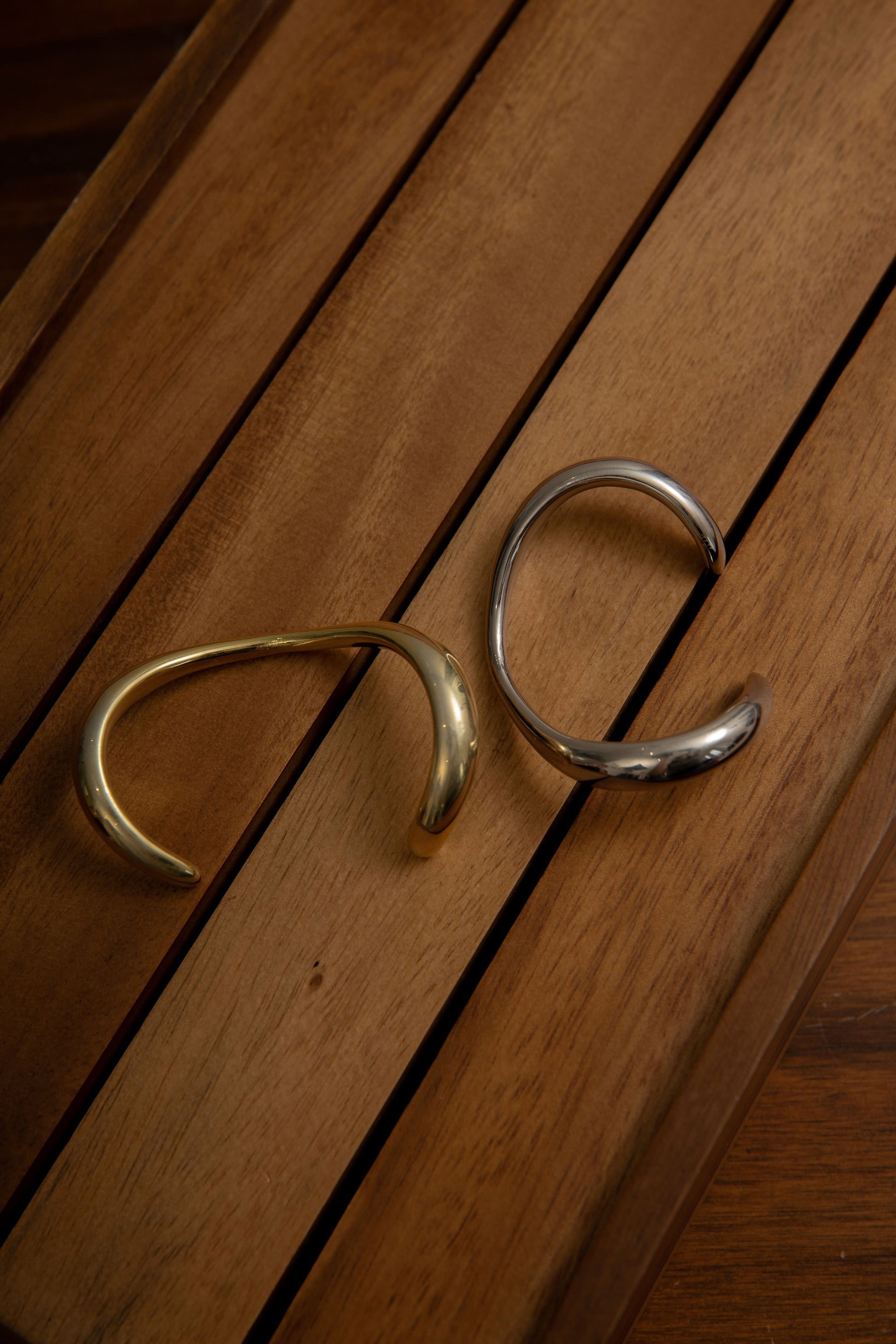 This bangle plays with proportion through a graceful tapered design—featuring a slimmer center that gradually widens toward the ends. The result is a subtle sculptural silhouette that feels both modern and timeless. With its smooth, polished finish and comfortable fit, it’s a quietly bold piece that elevates everyday styling with ease.